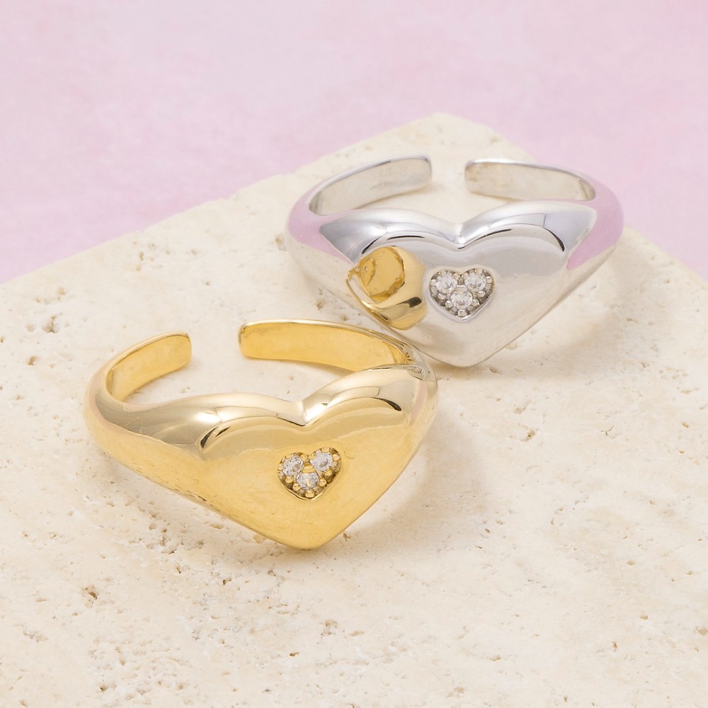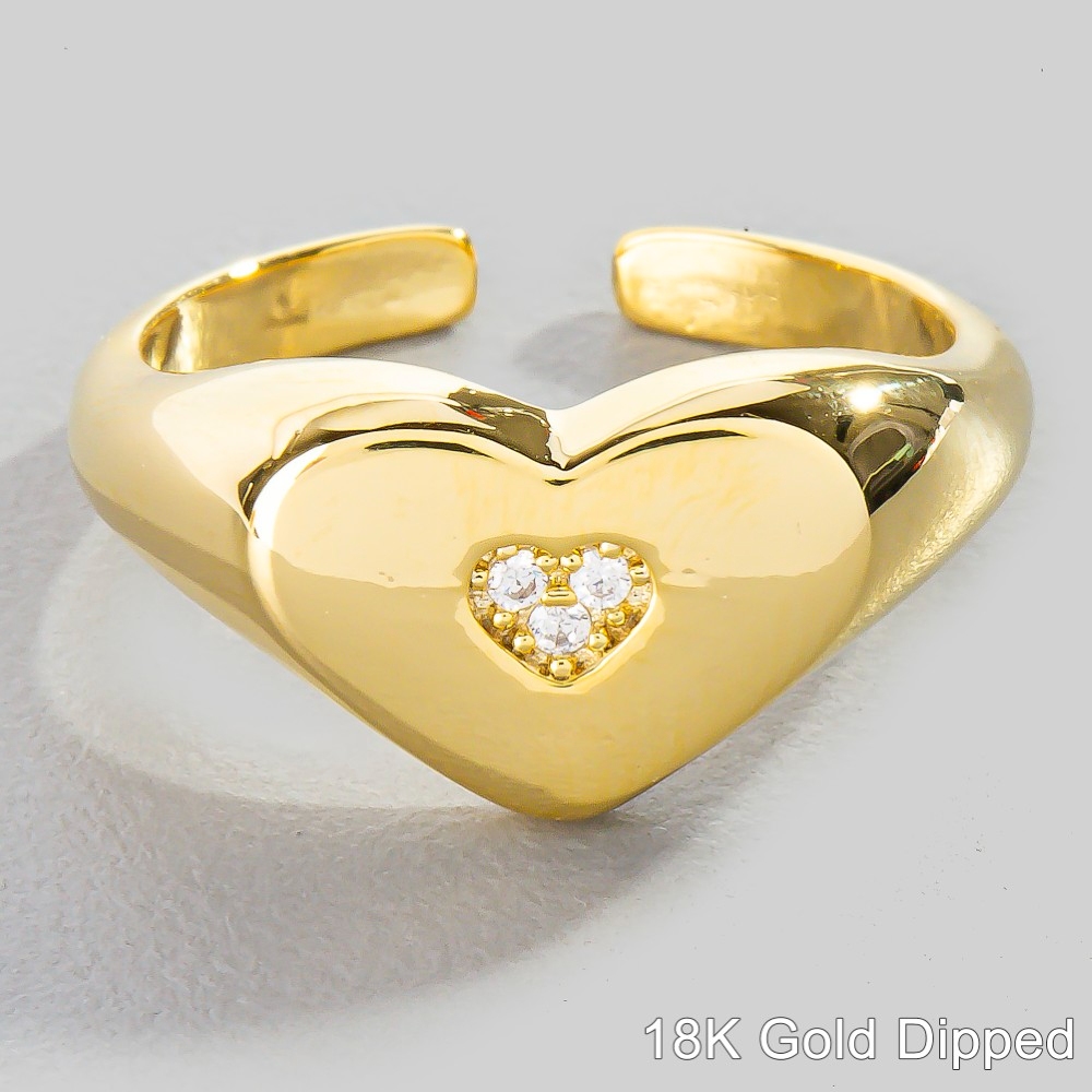 - Effortlessly chic and always on-trend, this ring exudes a refined 18k gold dipped cubic zirconia heart design. Perfect for any occasion, this versatile ring will enhance any outfit you wear. Available in G, S. This item is sold in packs of 1.