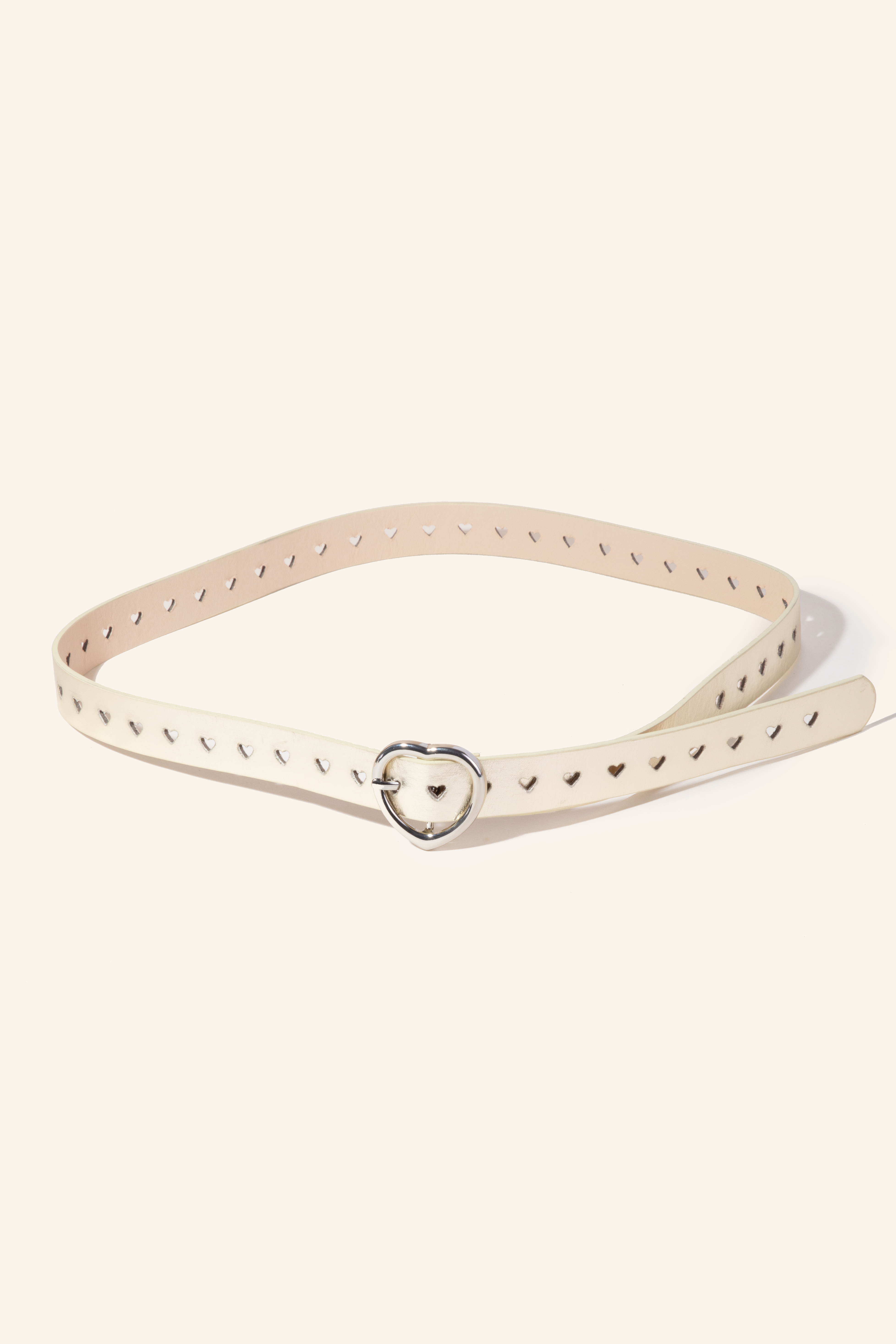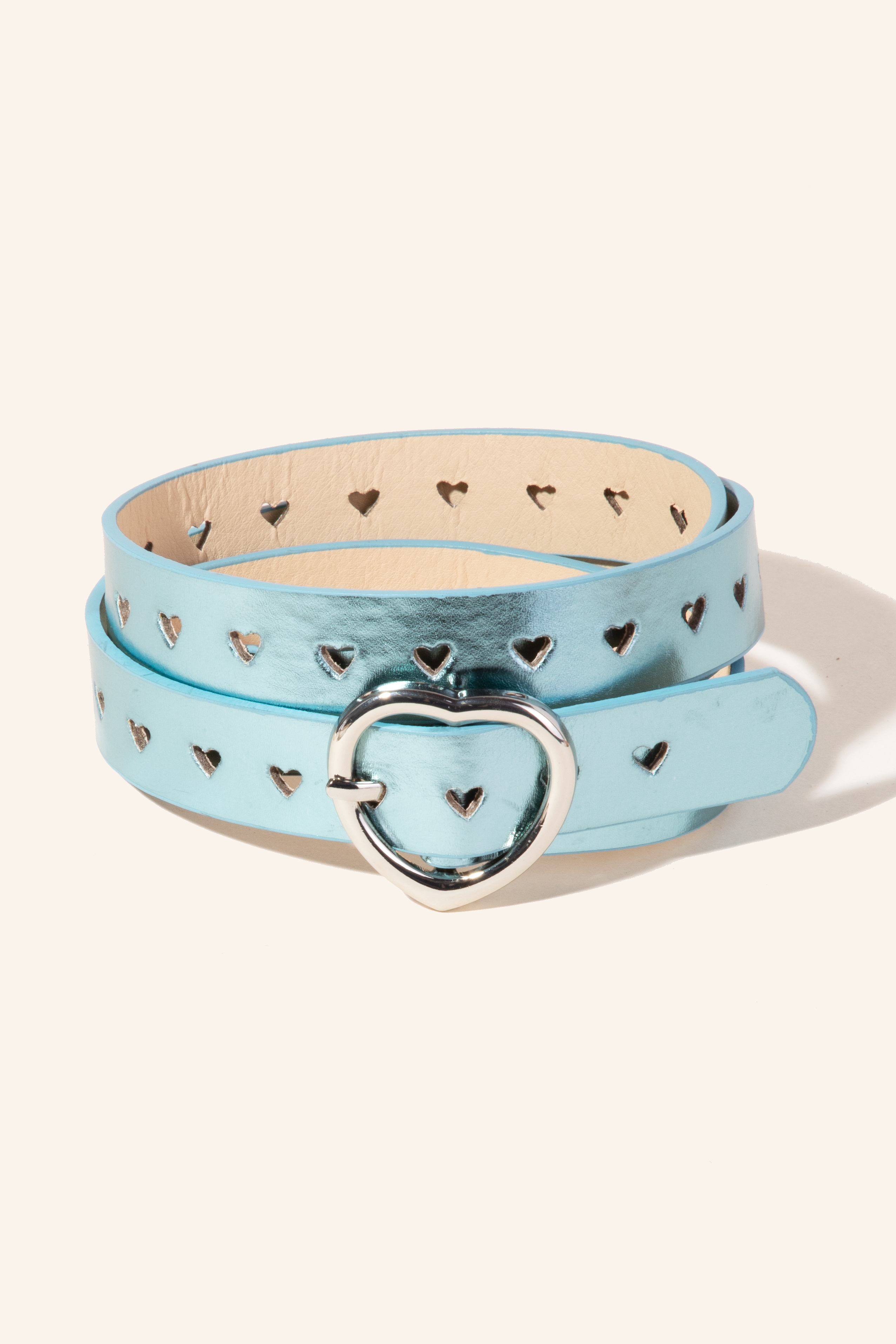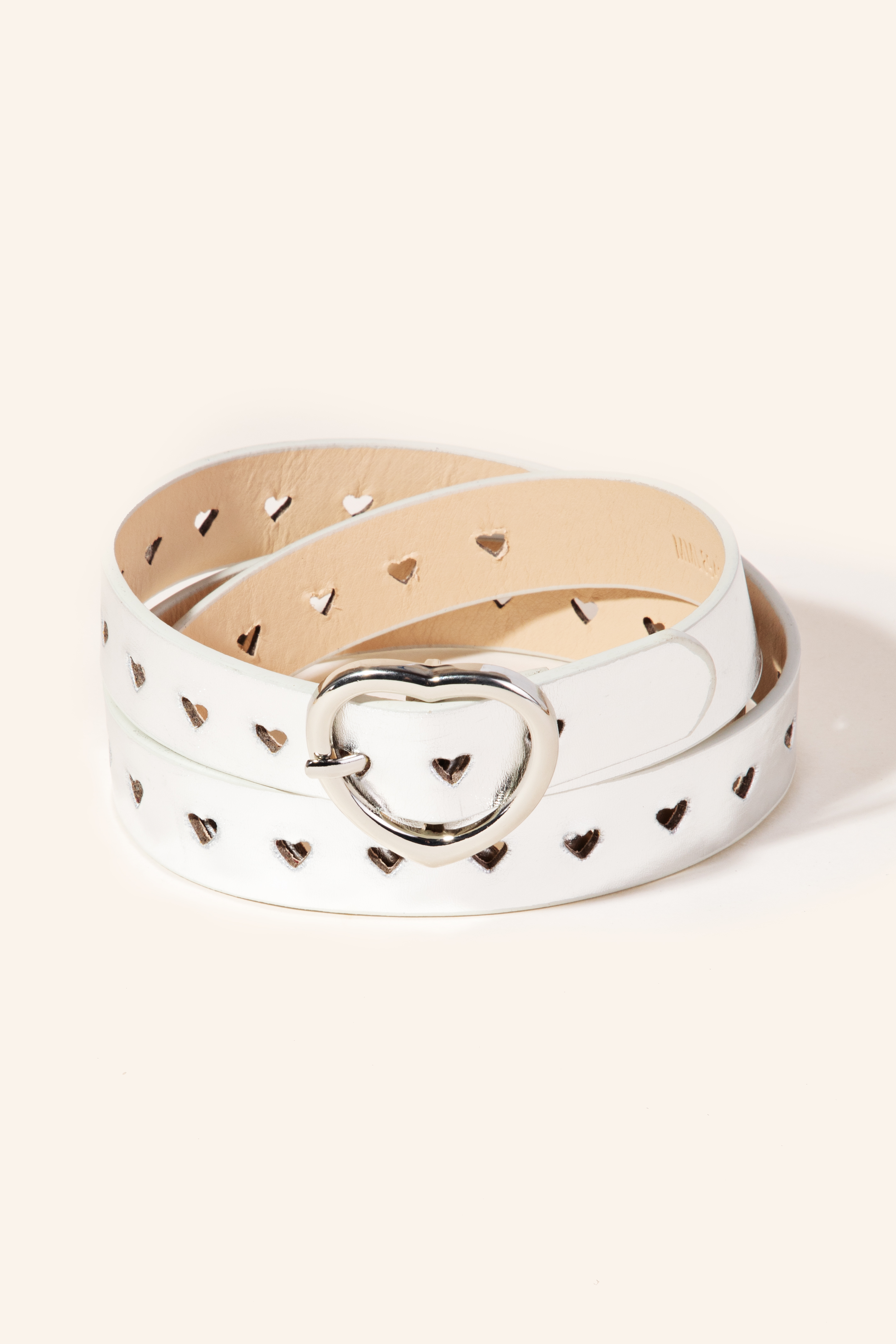 Embroidered Heart Studded Buckle Vegan Leather Belt