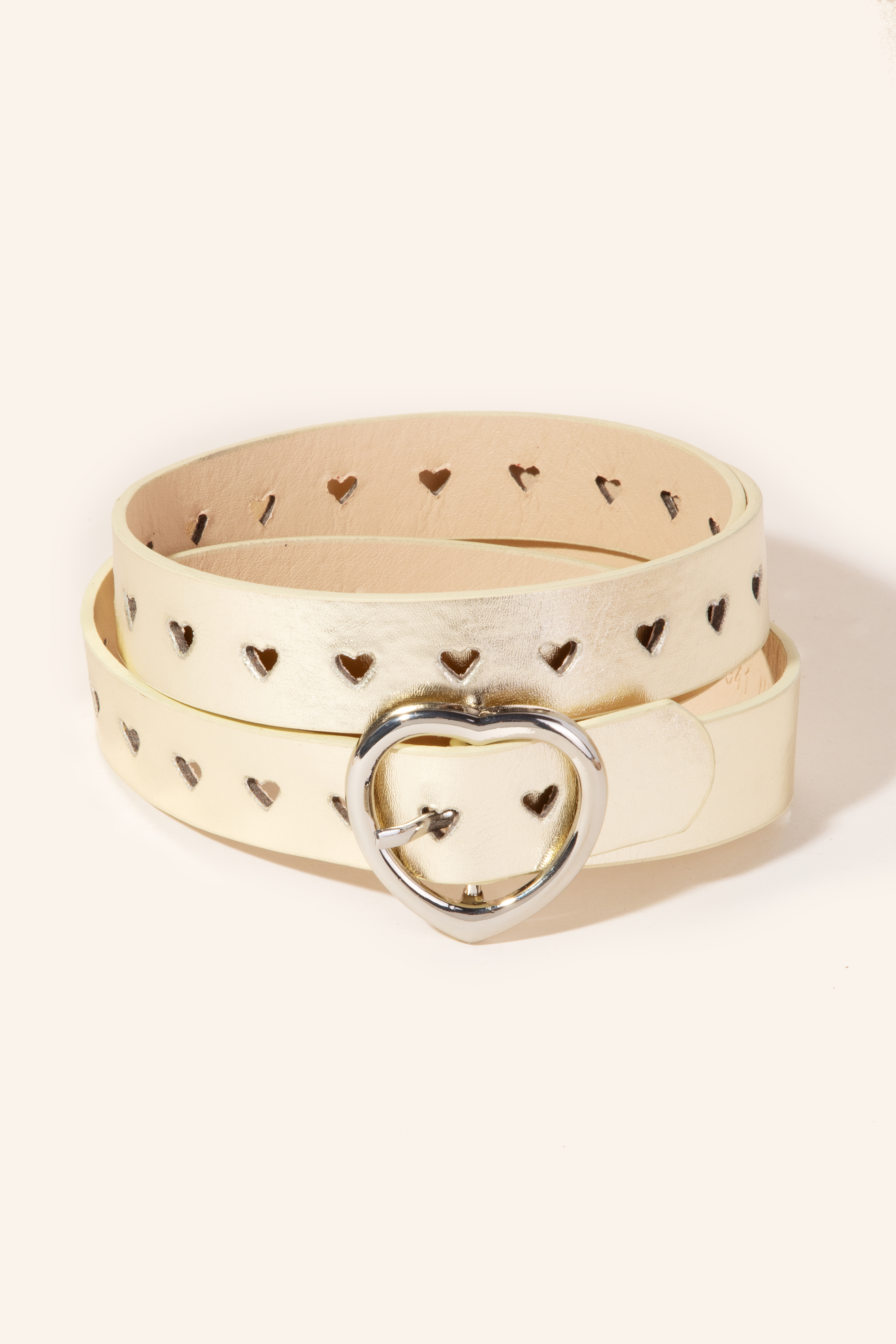 • Stay ahead of the fashion curve, this belt flaunts a luxurious heart buckle heart punched metallic design. Infuse your ensemble with a touch of sophistication using this versatile belt, a game-changer in the world of fashion. Available in BL, G, PK and S. This item is sold in packs of 1.