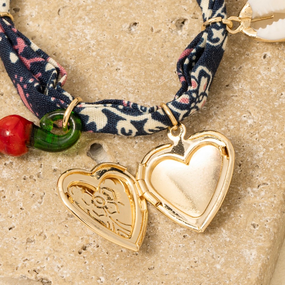 • A stunning piece that is sure to turn heads, this bracelet evokes a captivating heart locket and charms bandana design. Elevate your fashion statement with this versatile bracelet, adding a touch of glamour to your everyday look. Available in NV. This item is sold in packs of 1.