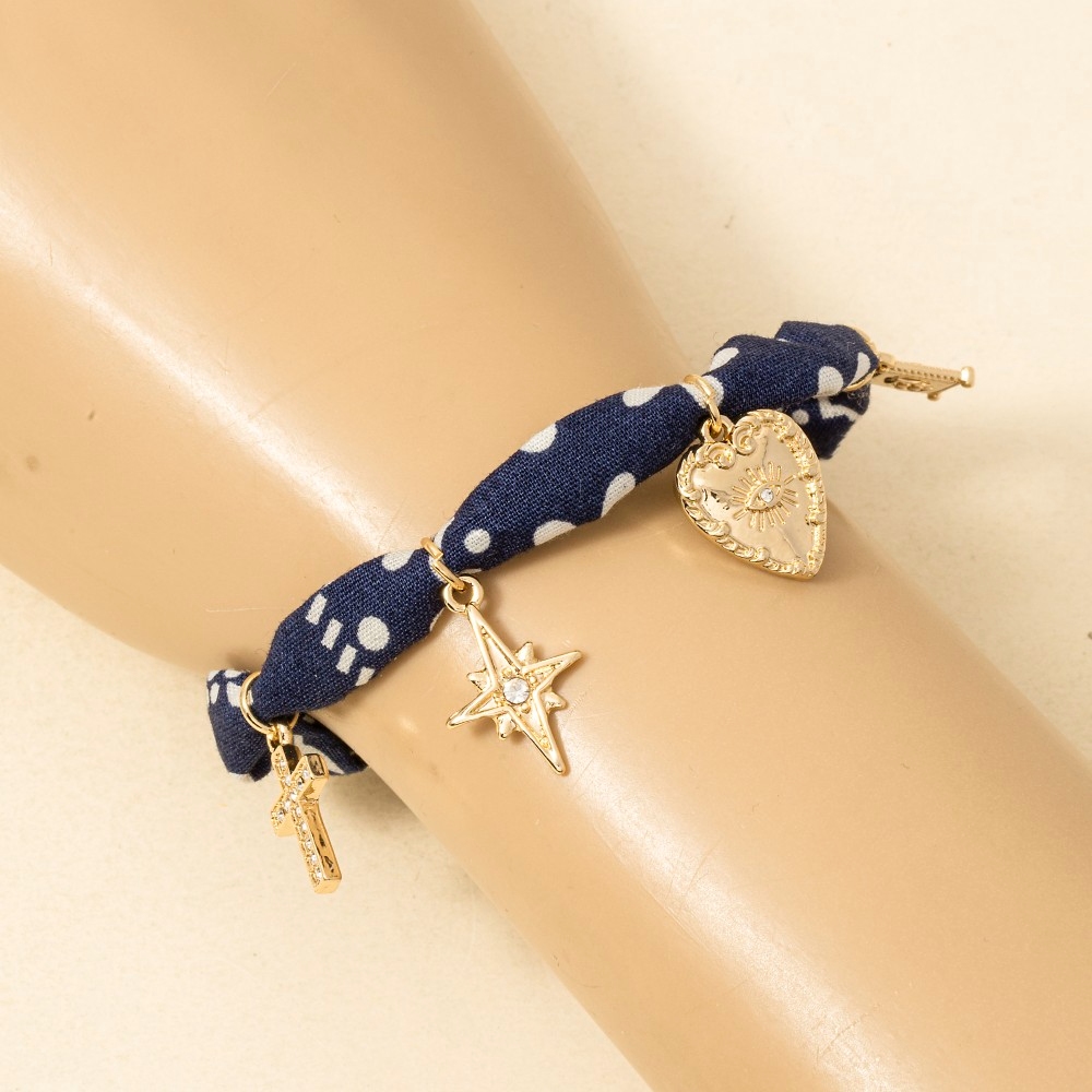 Heart Cross Bow And Shell Charms Bandana Bracelet