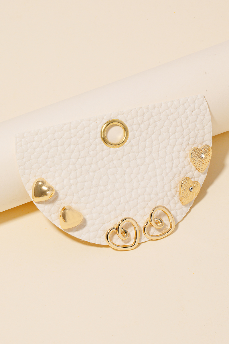 Sleek, modern, and always stylish, this pair of stud earrings features a distinct 3pc mixed heart set design. It also includes a faceted glass stud. This item is the perfect finishing touch to any outfit, adding a touch of glamour and sophistication. Available in GDCRY. This item is sold in packs of 1.