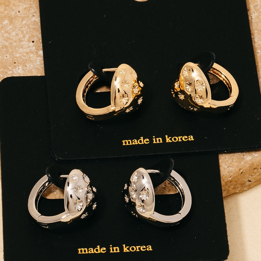 • This pair of hoop earrings is made with 95% Brass and 5% Cubic Zirconia.