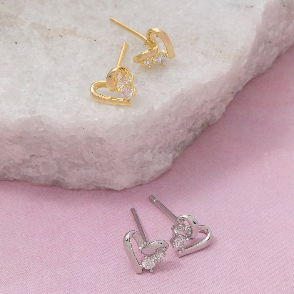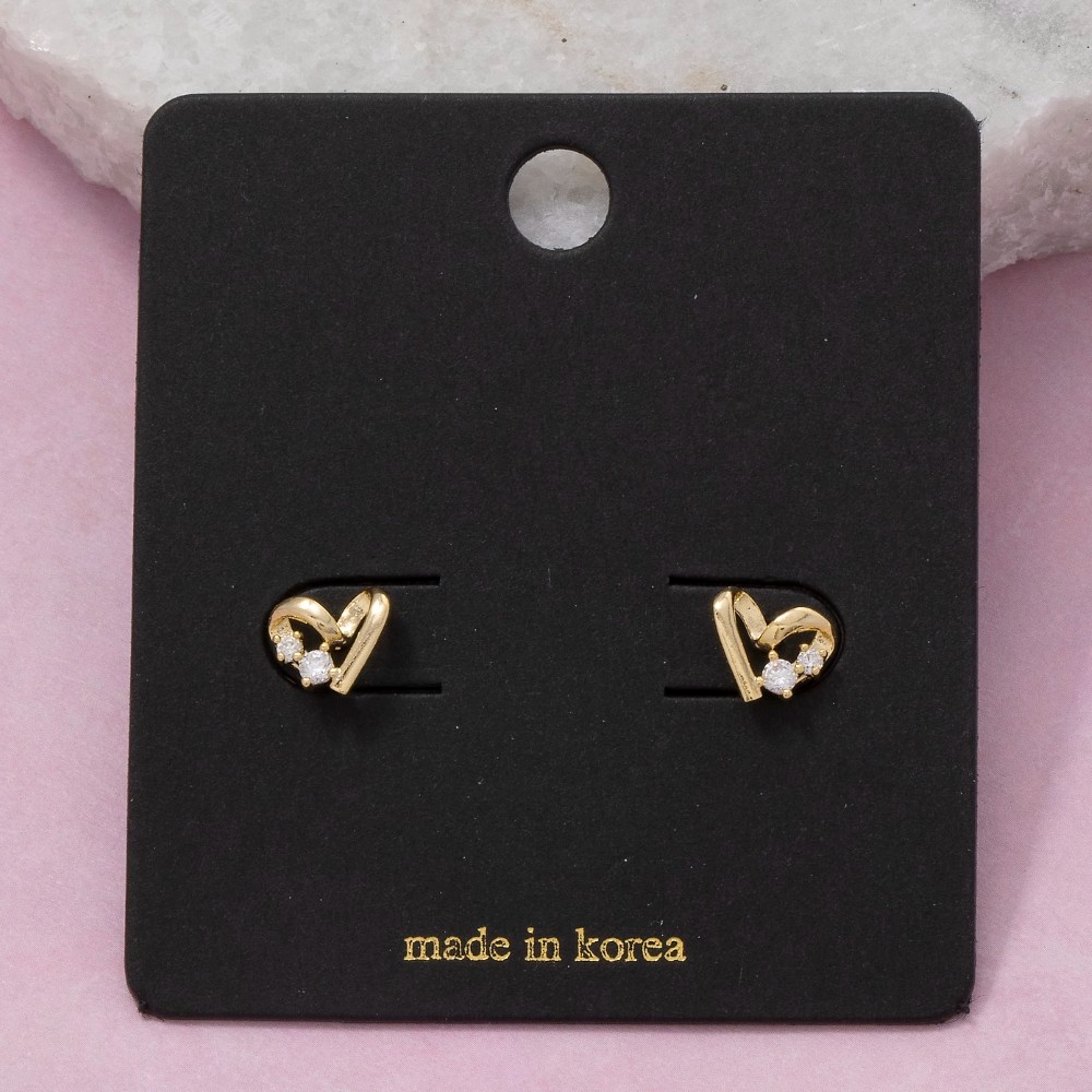 - Perfectly polished and endlessly versatile, this pair of stud earrings features a distinct cz studded mini heart design. Elevate your fashion statement with this versatile pair of stud earrings, adding a touch of glamour to your everyday look. Available in G, S. This item is sold in packs of 1.