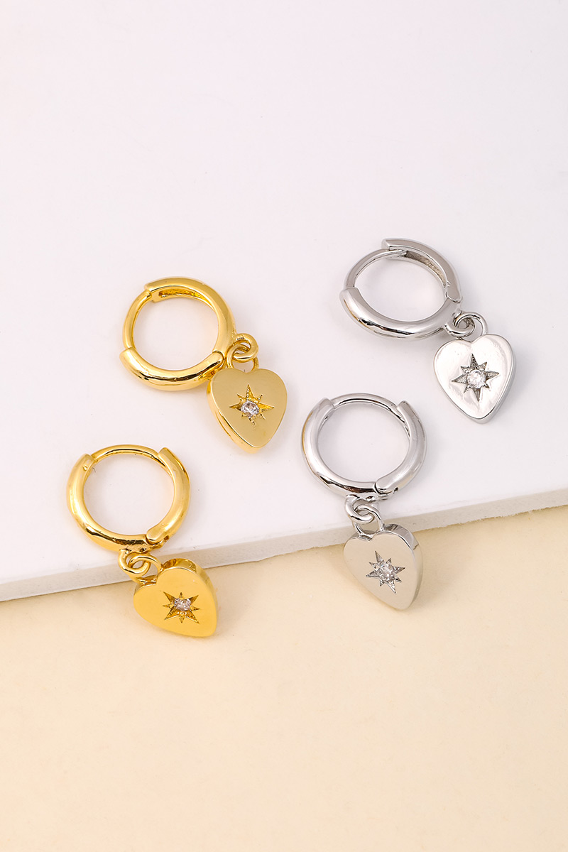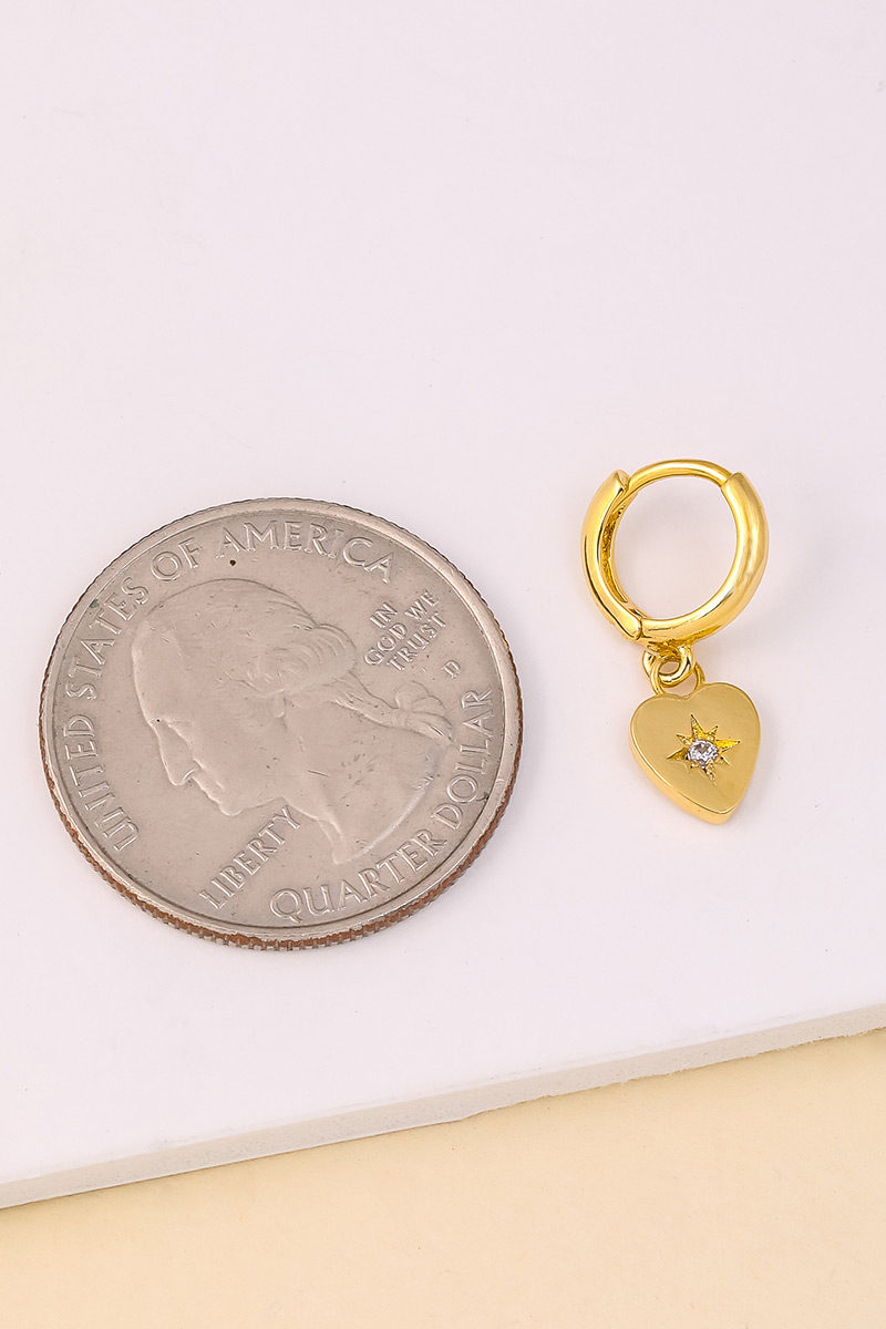• An instant wardrobe staple, this pair of earrings presents a striking gold dipped mini heart drop huggie design. Unlock endless styling possibilities with this versatile pair of earrings, creating a signature look that speaks volumes. Available in G. This item is sold in packs of 12.