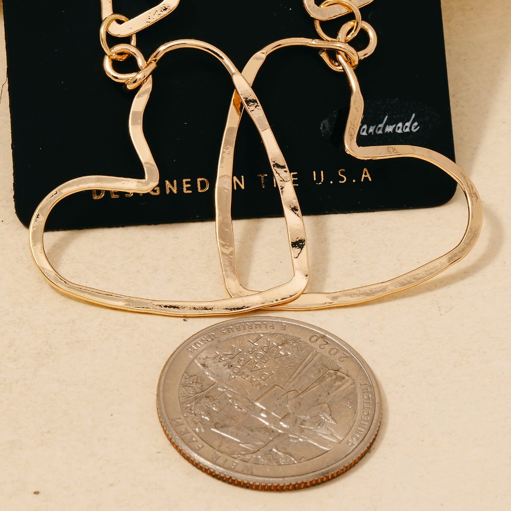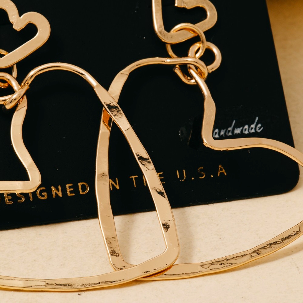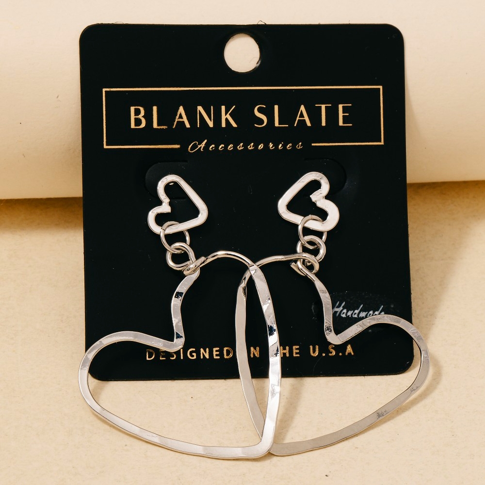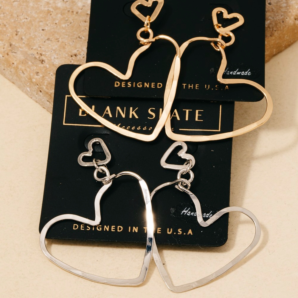 • Guaranteed to add a touch of glamour to any outfit, this pair of earrings showcases an alluring handmade heart dangle cutout design. A must-have pair of earrings that adds a unique flair to any look. Available in G, S. This item is sold in packs of 1.