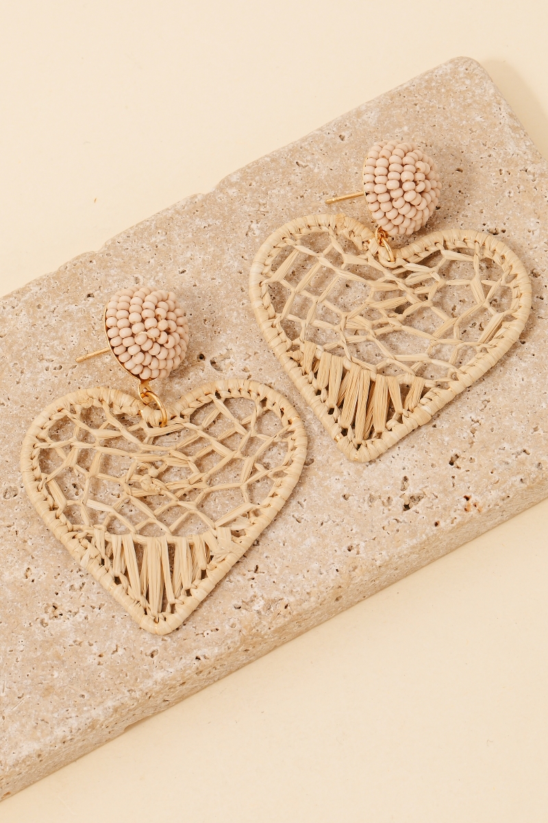 This pair of dangle earrings showcases a unique intricate web woven heart style. Unveil modern elegance with this subtly intricate pair of dangle earrings.