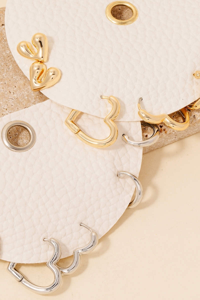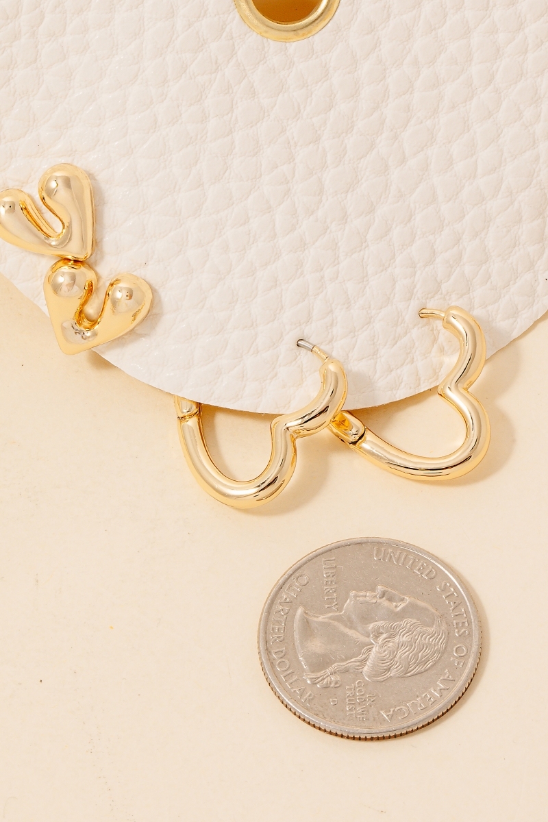This pair of earrings showcases a unique mixed metallic hearts set style. Celebrate the art of accessorizing with this piece that effortlessly encapsulates modern trends.