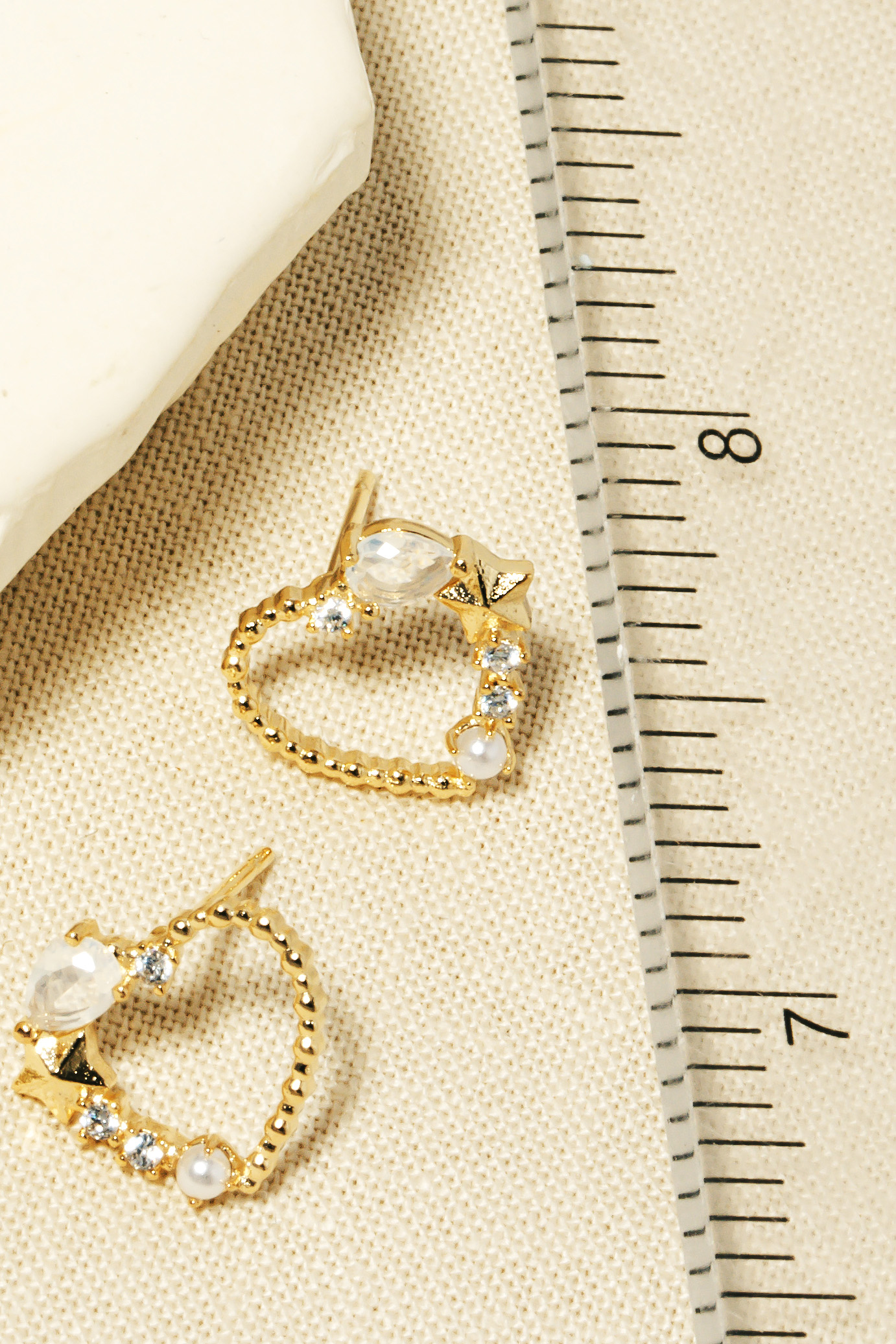- This piece is a true showstopper, this pair of stud earrings includes a stunning rhinestone cluster heart design. Elevate your personal style effortlessly with this versatile accessory, an essential component for a refined wardrobe. Available in G. This item is sold in packs of 1.