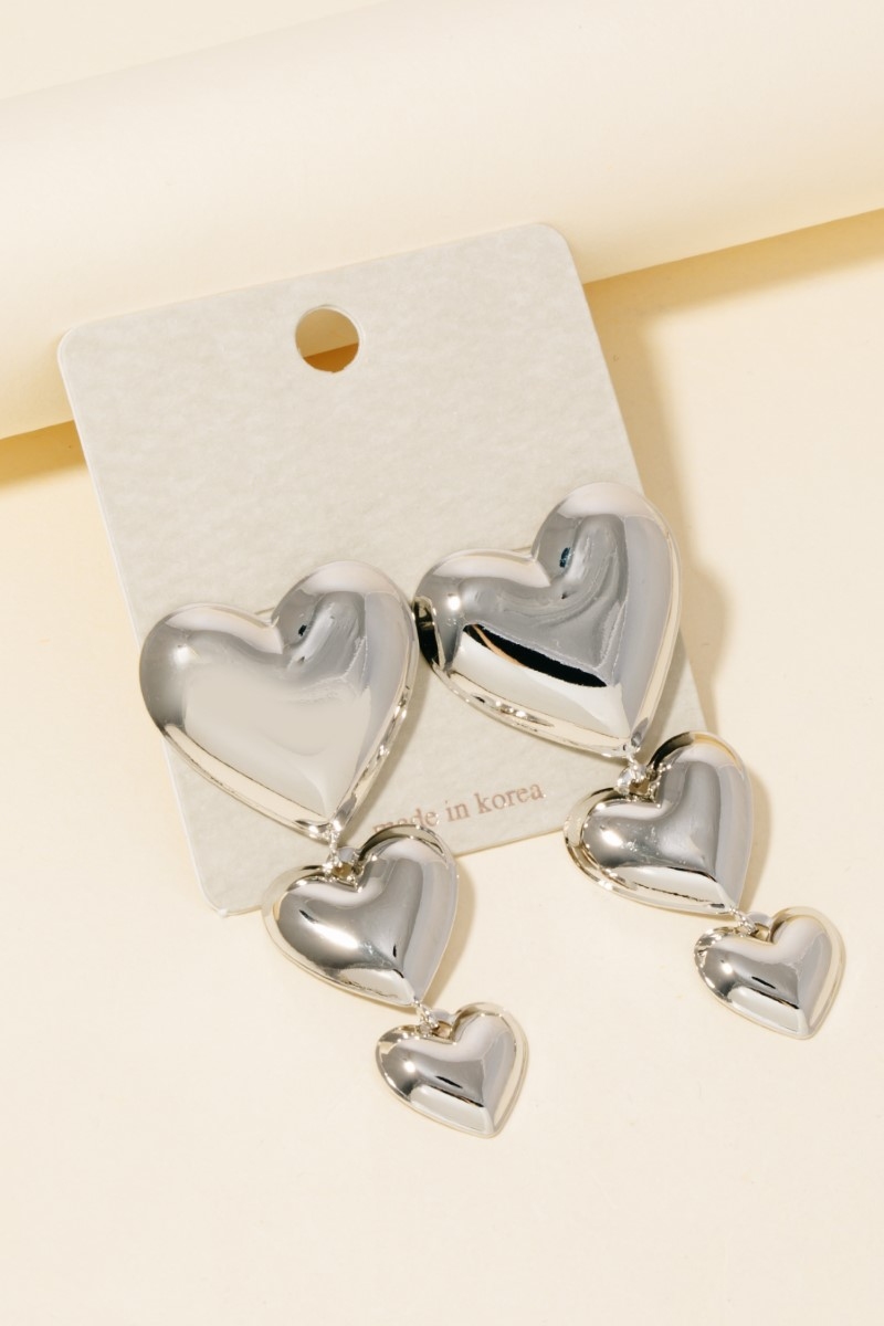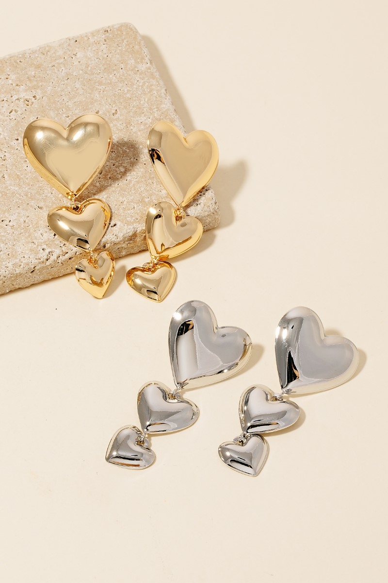 • Perfect for any fashion-forward individual, this pair of dangle earrings showcases a breathtaking triple metallic heart chain design. A must-have pair of dangle earrings for anyone who loves to add some flair to their outfits. Available in G and S. This item is sold in packs of 1.