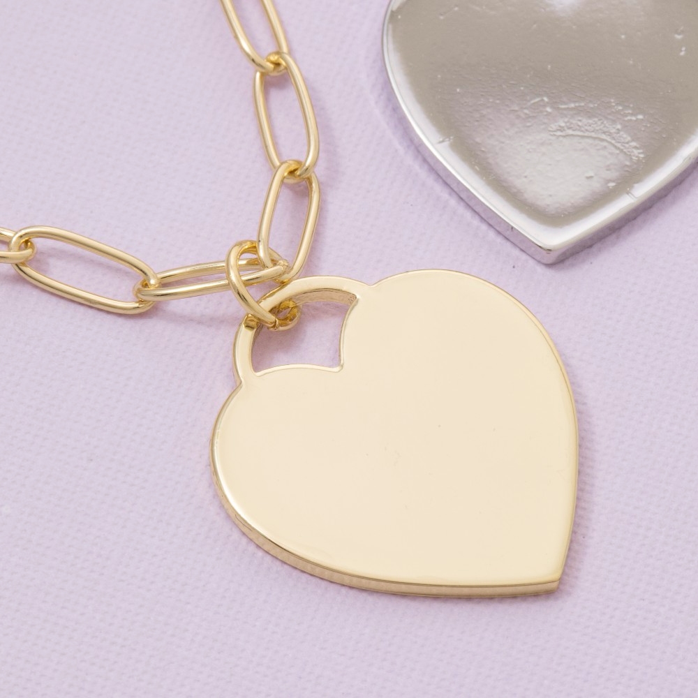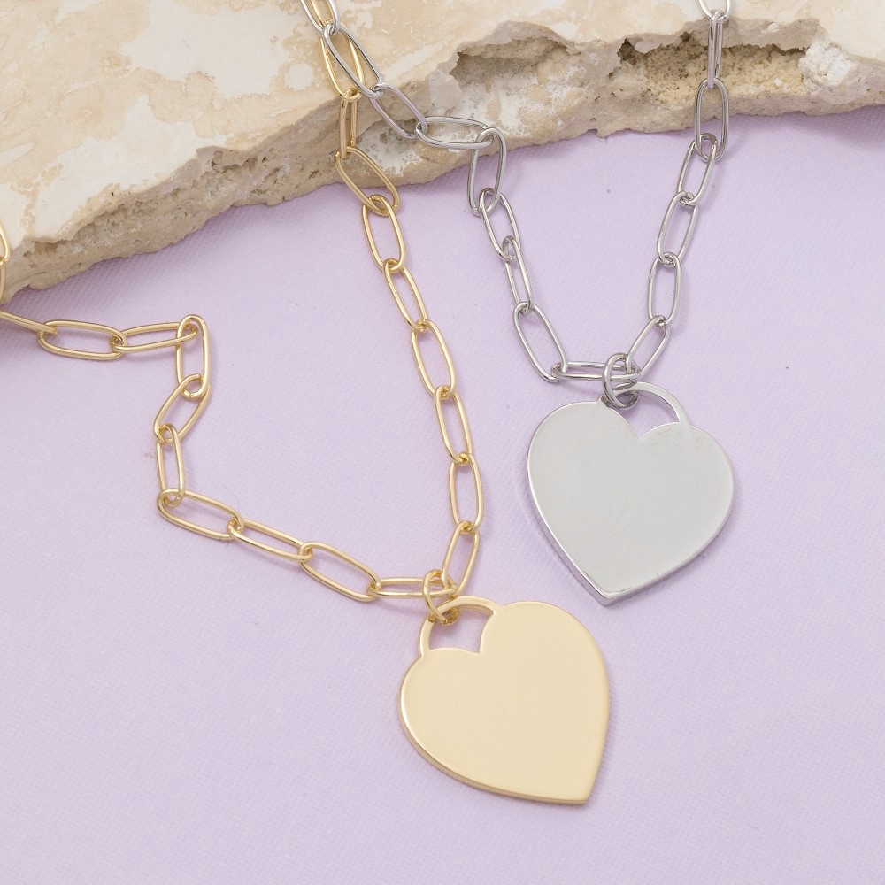 • Make a bold statement, this pendant necklace showcases an alluring gold dipped flat heart design. Perfect for adding some personality and flair to your wardrobe, this pendant necklace is a must-have. Available in GOLD, 2SILVER. This item is sold in packs of 1.