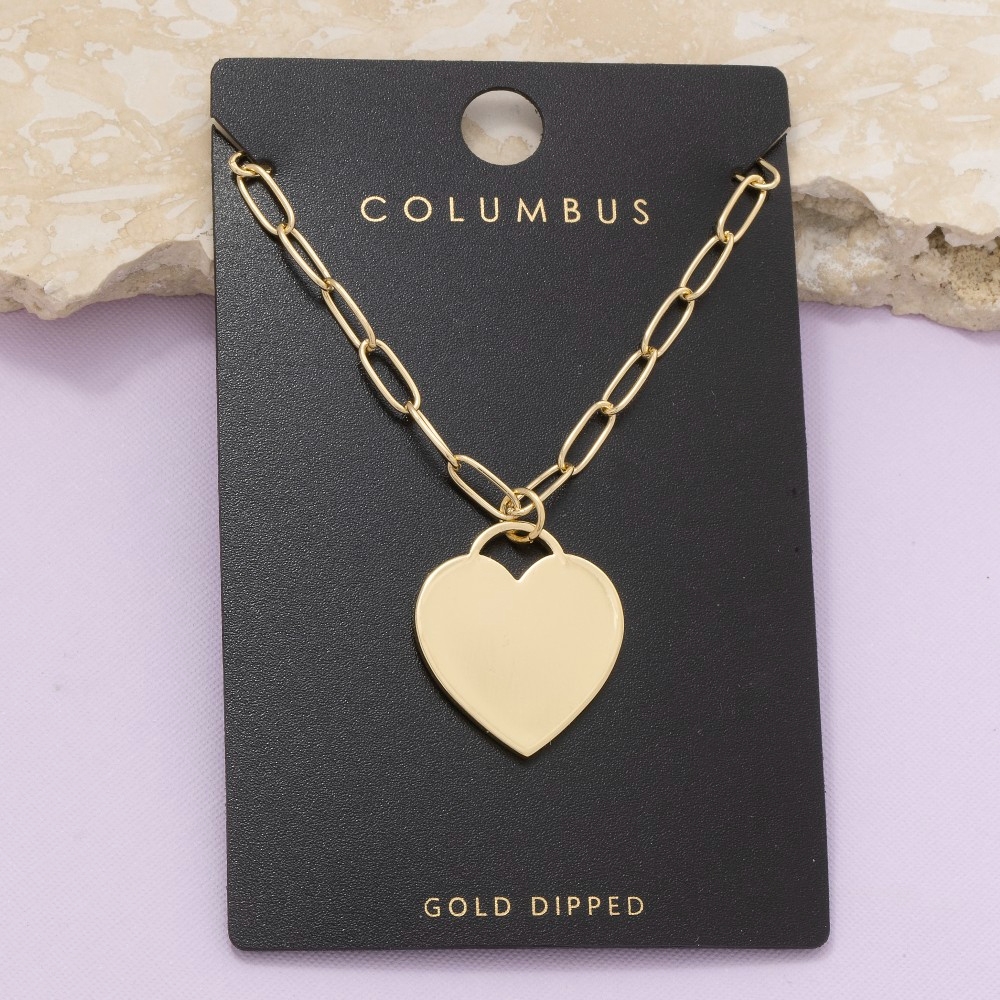 Gold Dipped Heart Pendant Tube Chain Necklace