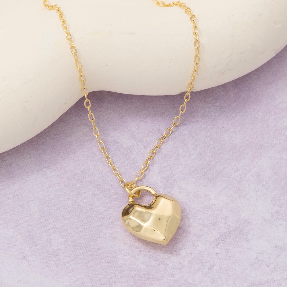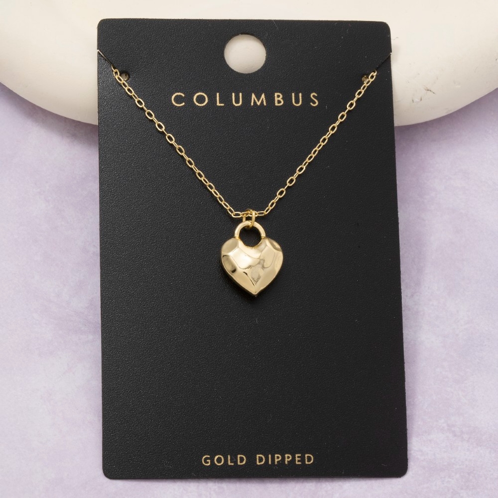 • A must-have addition to any pendant necklace collection, this pendant necklace evokes a captivating gold dipped hammered heart design. This pendant necklace is an effortless way to add some personality to your outfit. This item is sold in packs of 1.