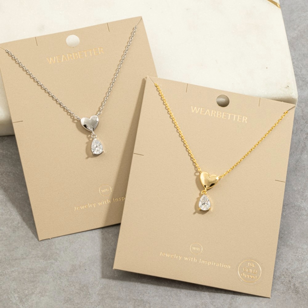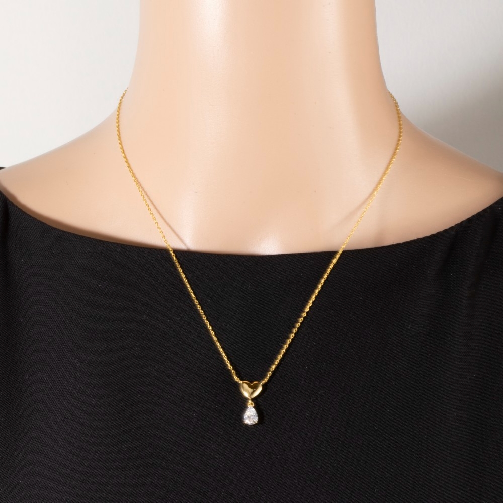 • A stunning addition to any jewelry collection, this pendant necklace radiates a sleek gold dipped heart and cubic zirconia tear design. A stylish pendant necklace that's perfect for complementing any outfit you wear. Available in G, S. This item is sold in packs of 1.