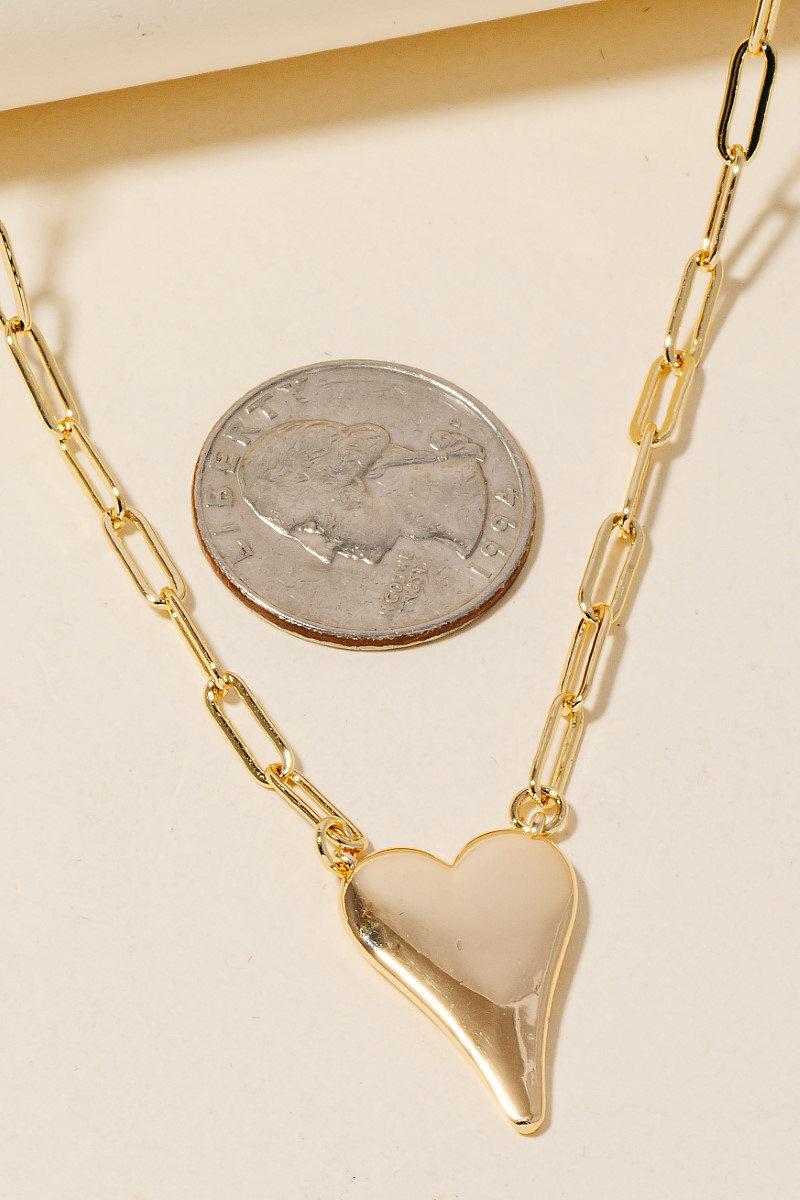 Gold Dipped Heart Pendant Tube Chain Necklace