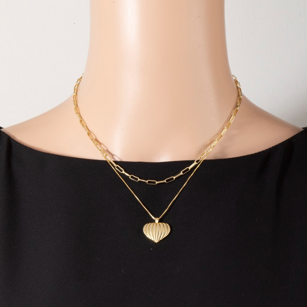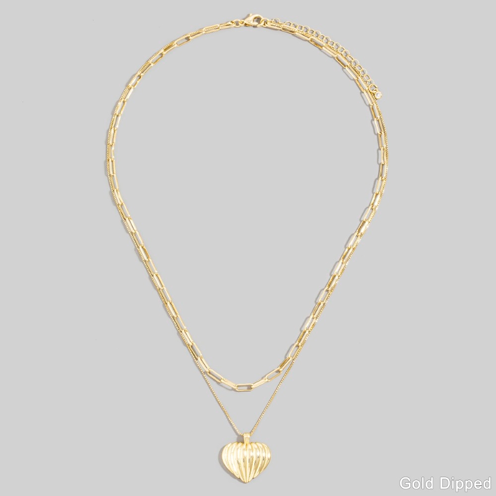 • Add some edge to your look, this layered necklace showcases a breathtaking gold dipped ridged heart pendant design. This item is perfect for adding some color and vibrancy to any outfit. This item is sold in packs of 1.