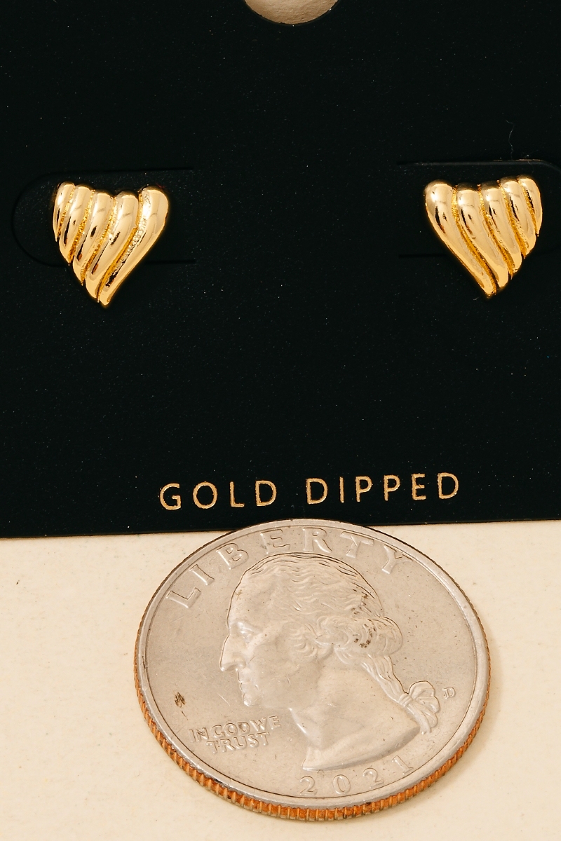• this pair of columbus jewelry stud earrings introduces a unique gold dipped textured heart style. Elevate your ensemble with this pair of columbus jewelry stud earrings that effortlessly captures the essence of refined fashion.