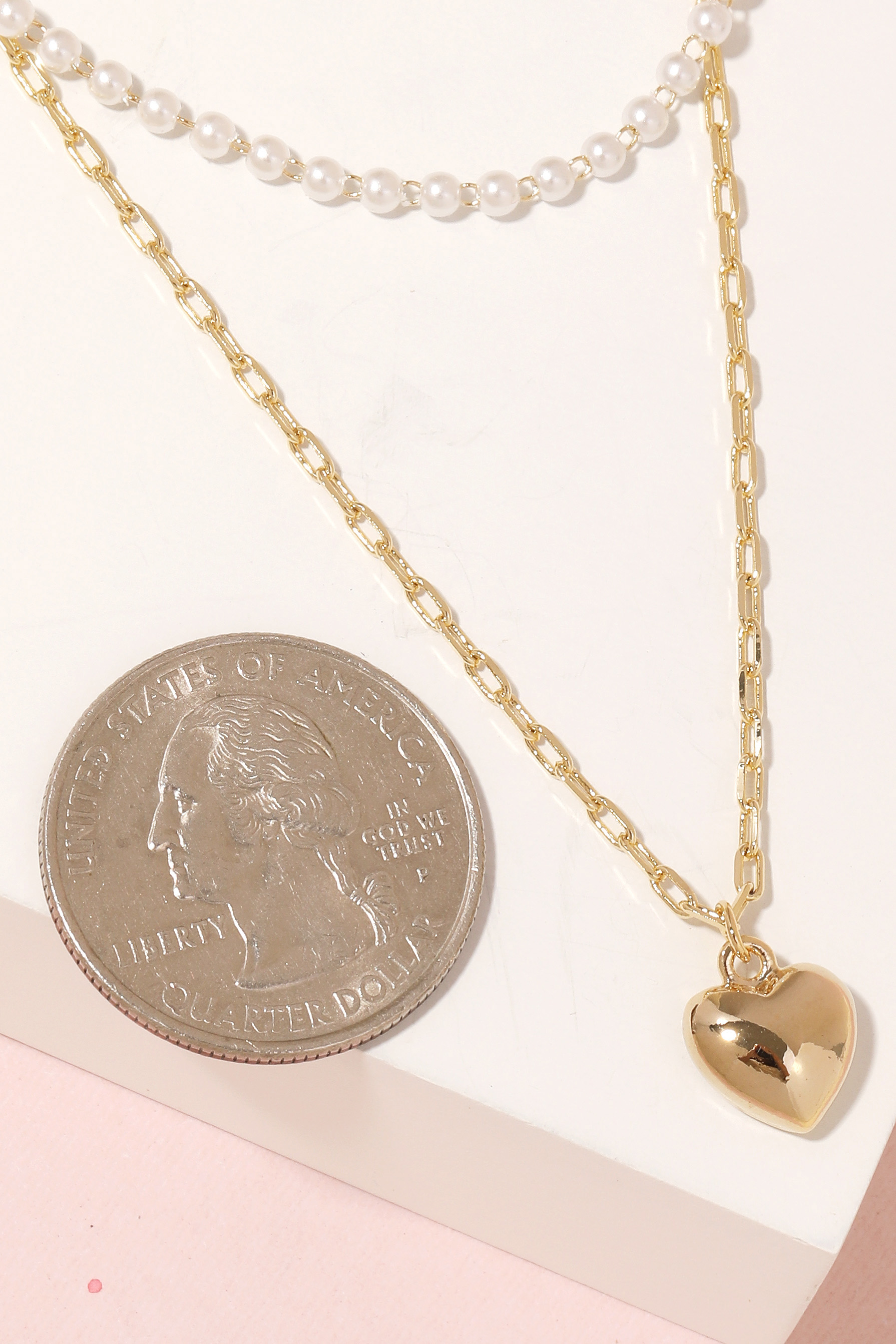 • This piece is perfect for those who want to showcase their unique style, this necklace brings a one-of-a-kind chain bead layered heart pendant necklace design. This accessory is a great way to add some glamour and sophistication to your outfit. This item is sold in packs of 1.