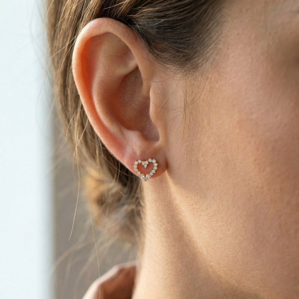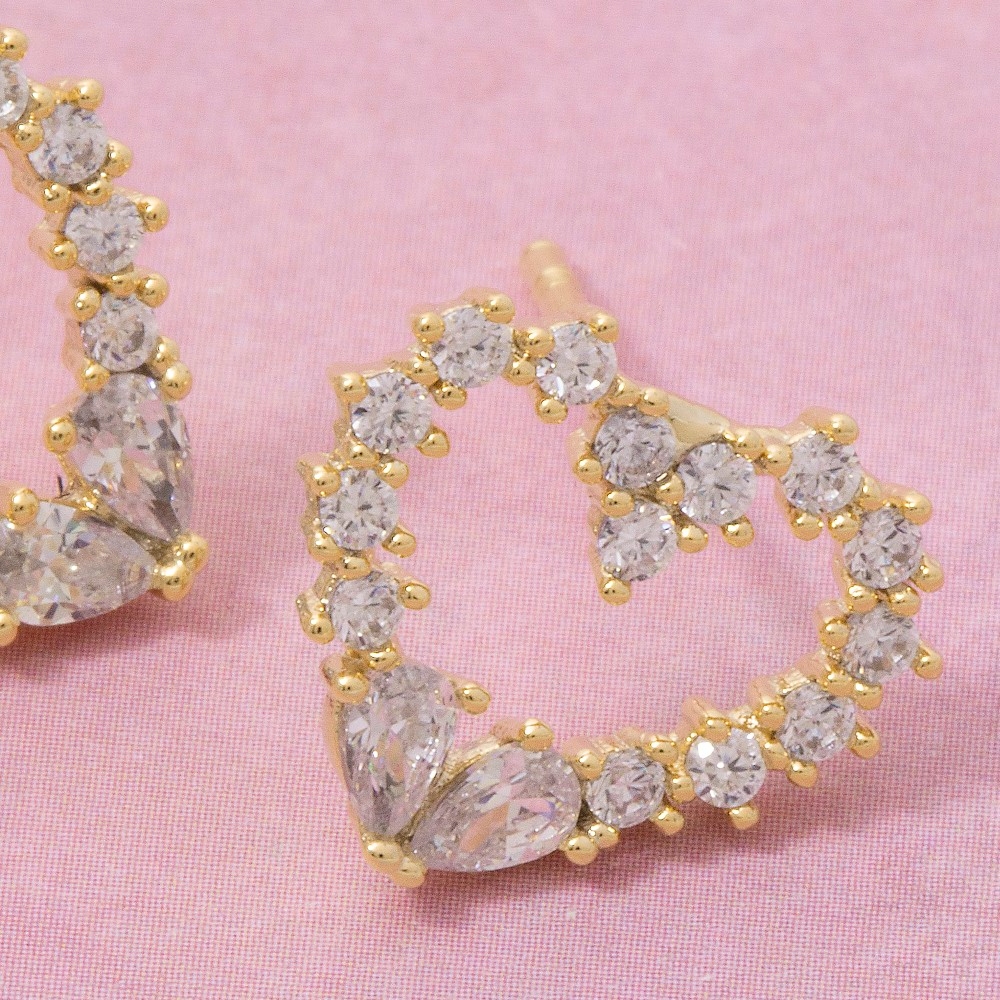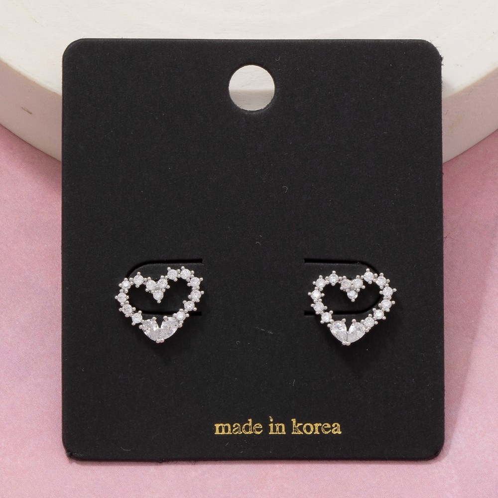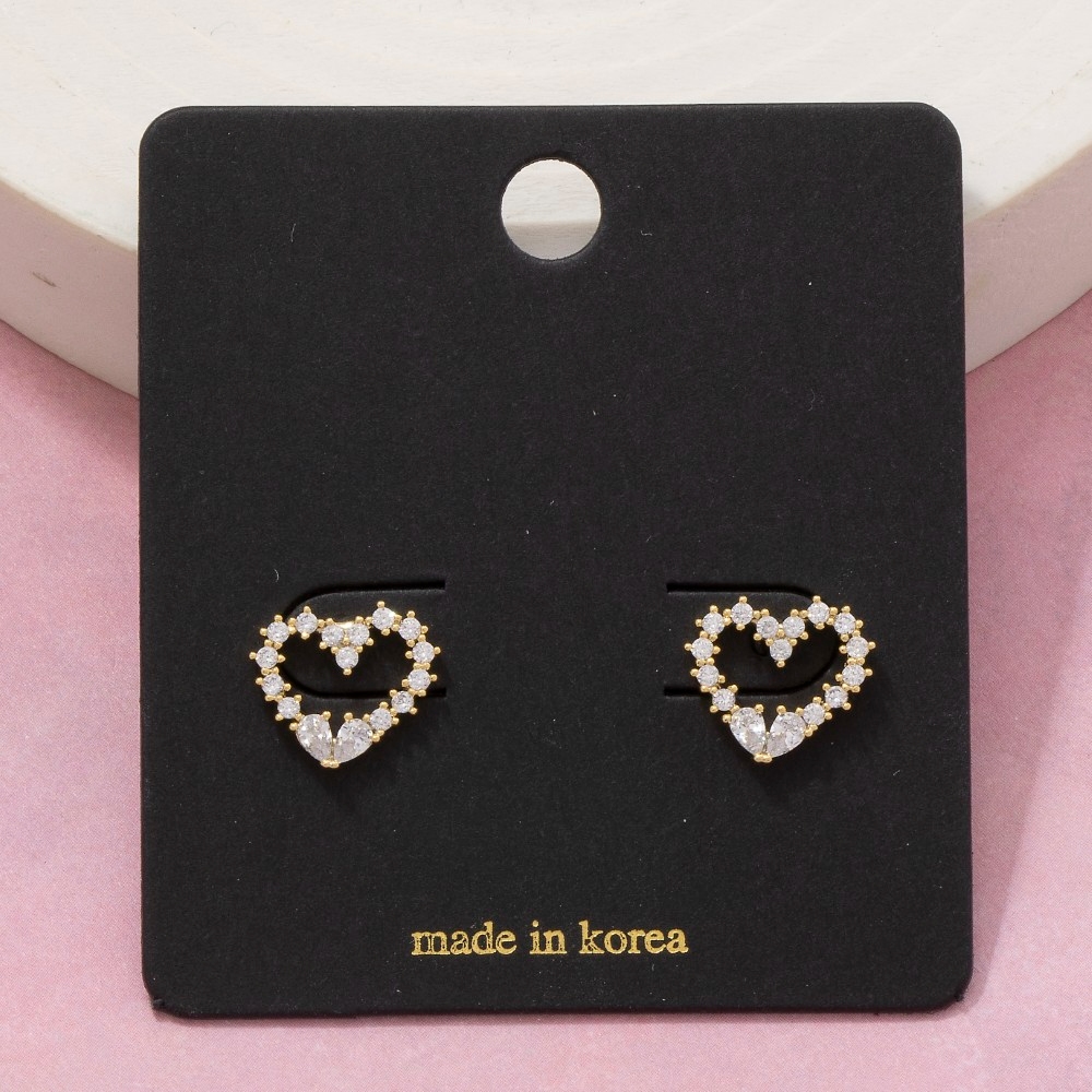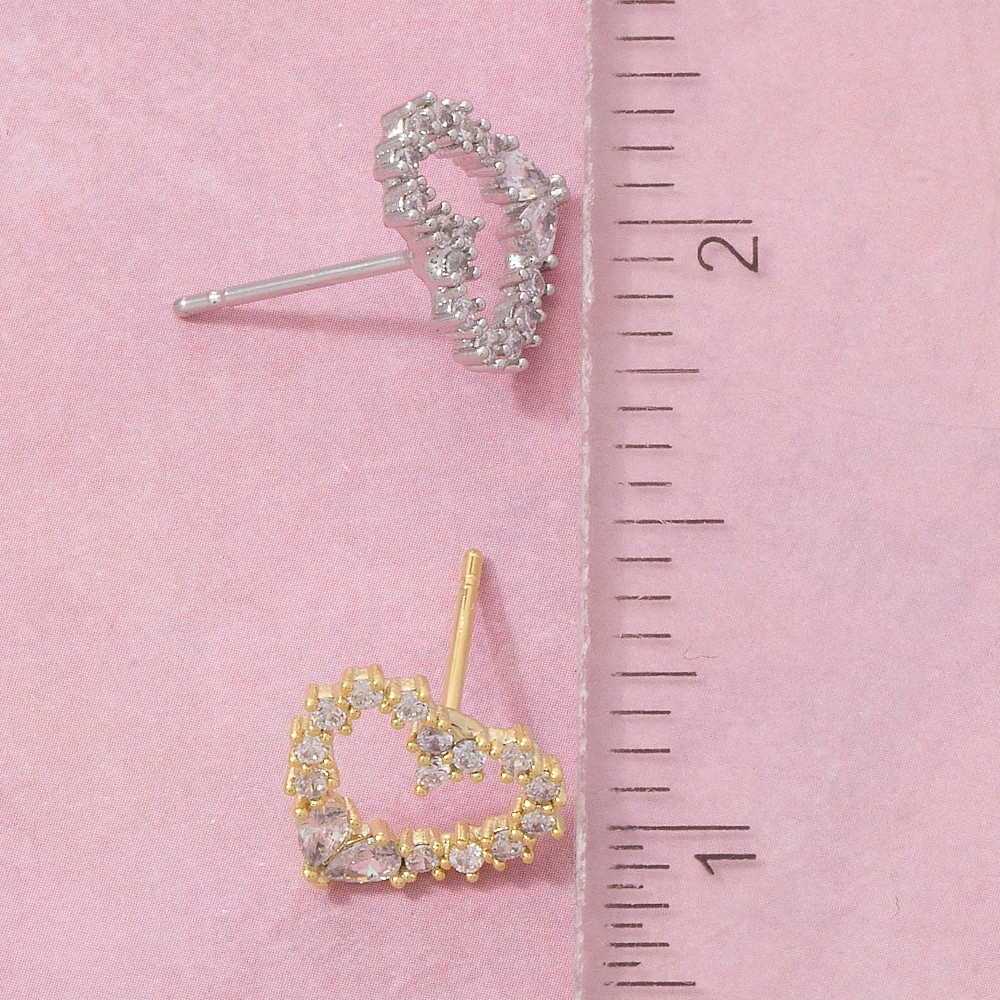 - Upgrade your pair of stud earrings game, this pair of stud earrings shows off a distinctive cz studded heart design. This item is a great way to add some texture and dimension to any outfit. Available in G, S. This item is sold in packs of 1.