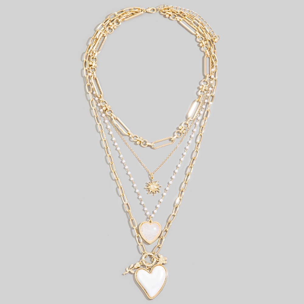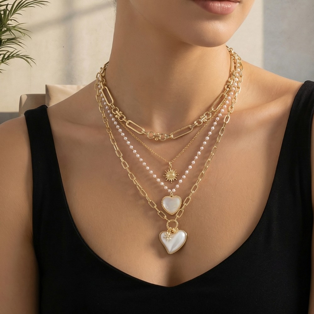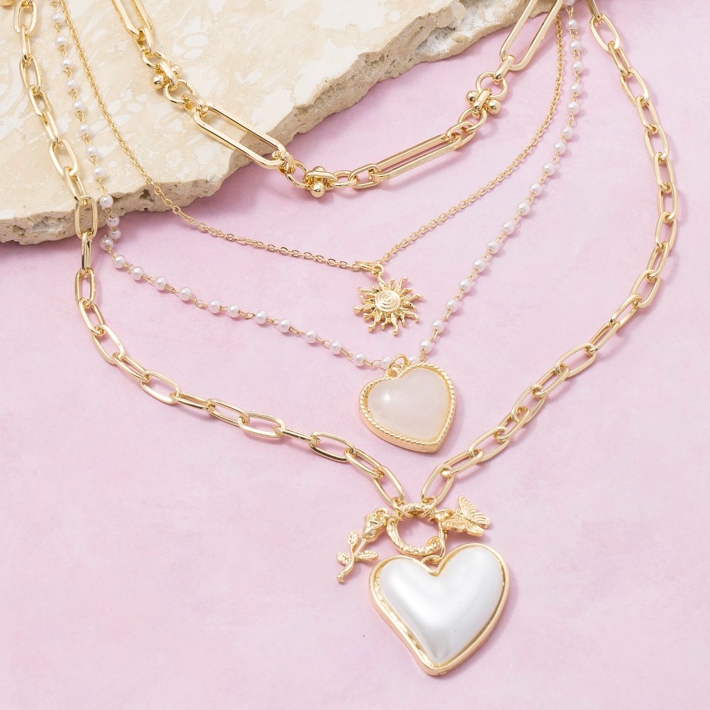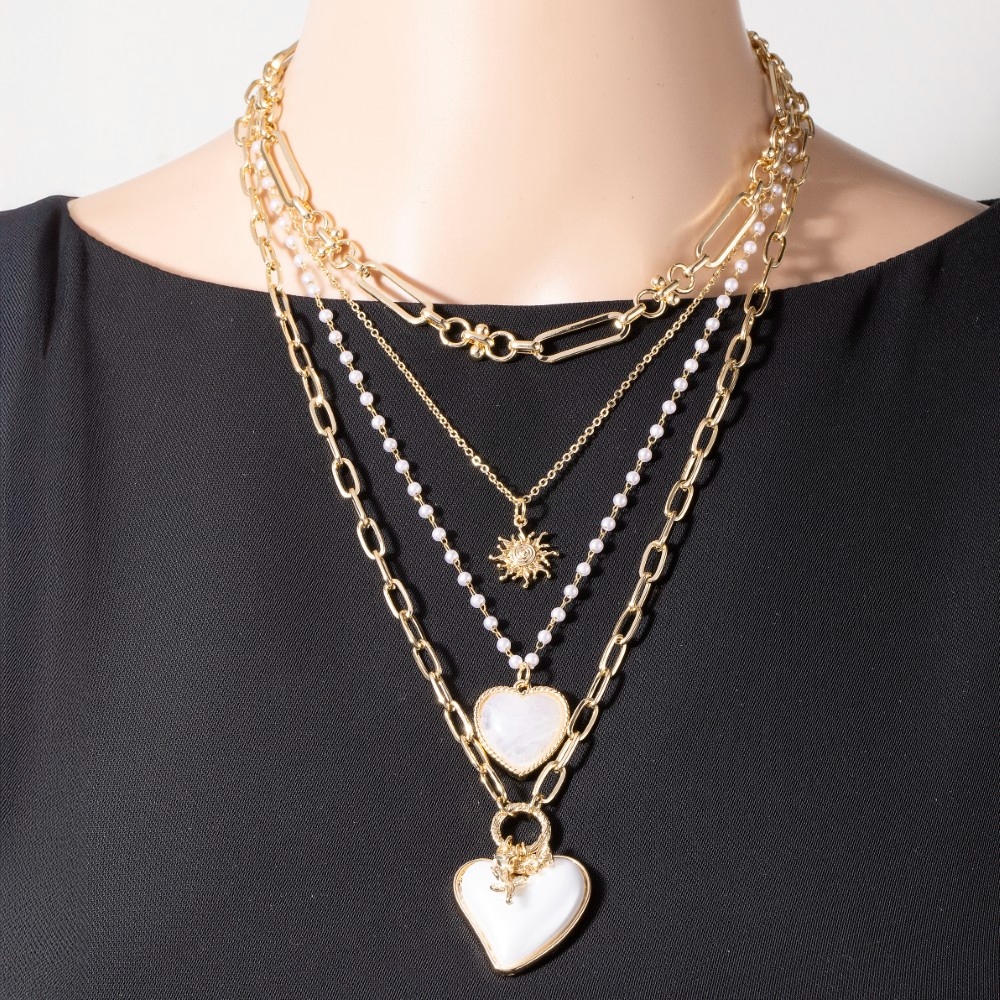 • This piece is designed to be both stylish and functional, this pendant necklace reveals an intricate double heart pendants layered chains necklace design. Add a dash of sophistication to your look with this versatile pendant necklace, a must-have for fashion enthusiasts. Available in G. This item is sold in packs of 1.