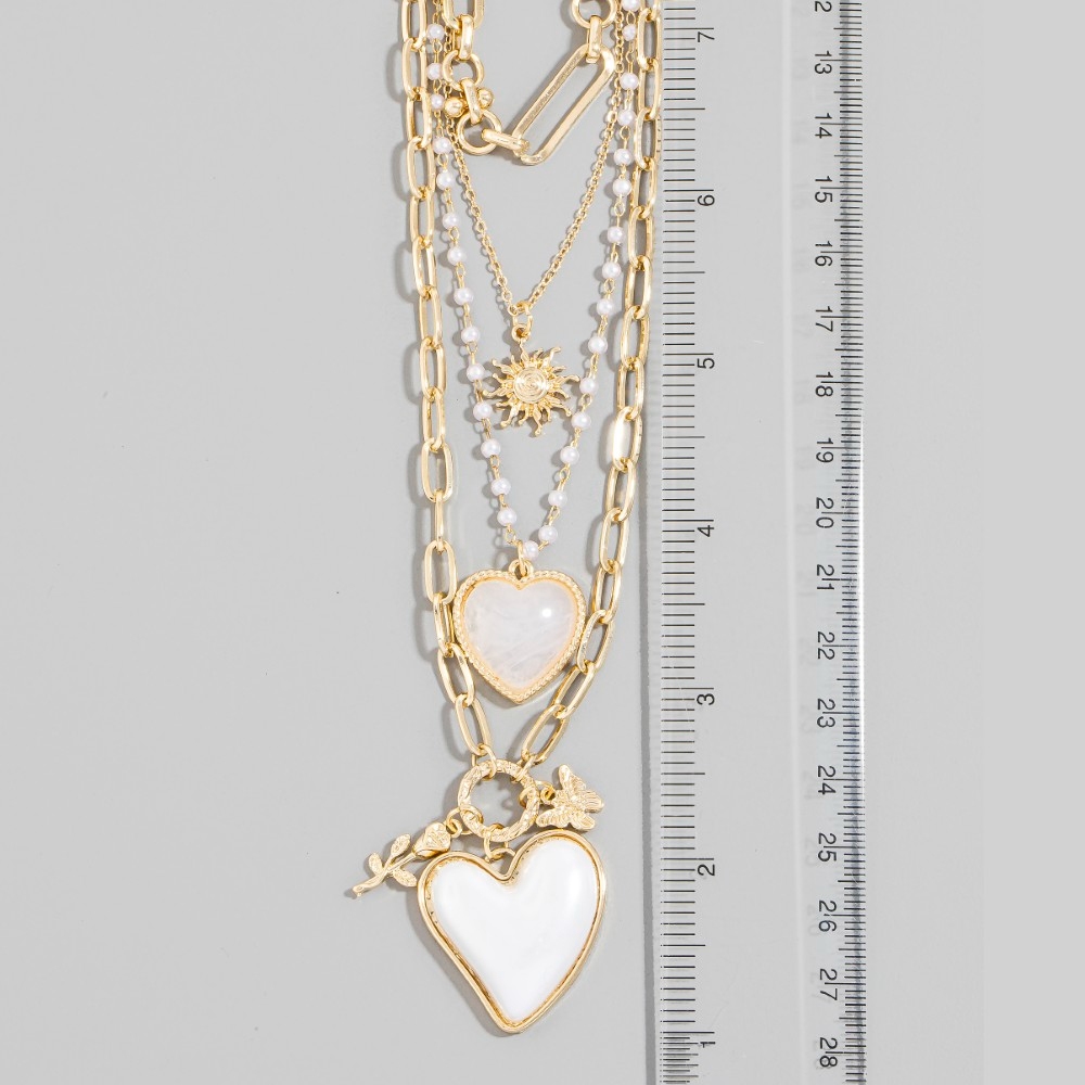 Gold Dipped Mini Heart Station Charms Chain Necklace