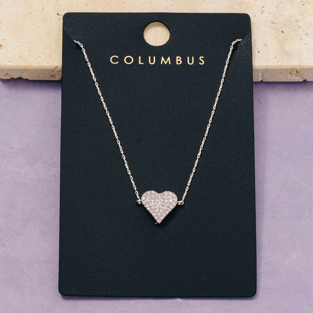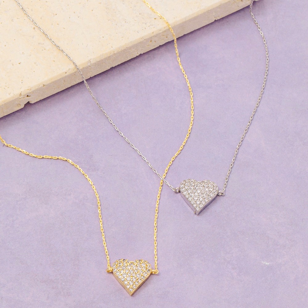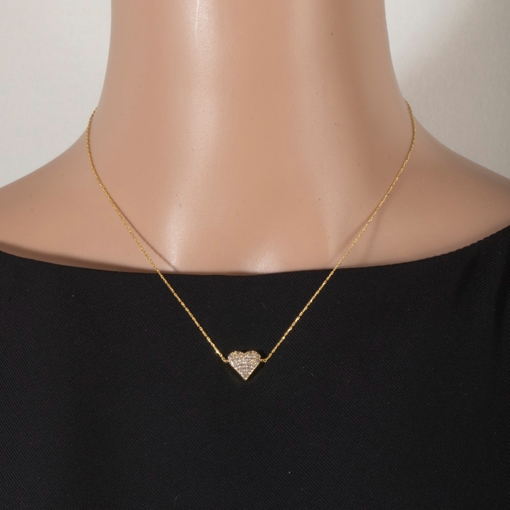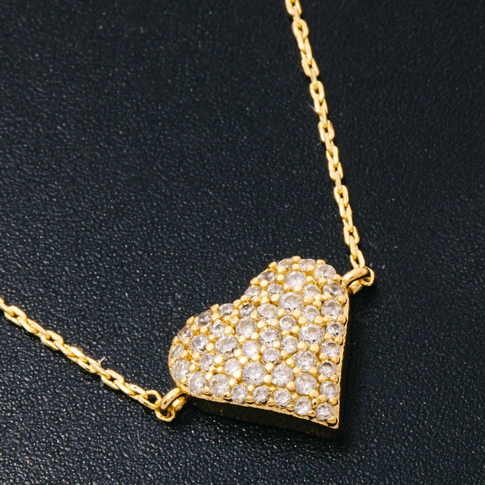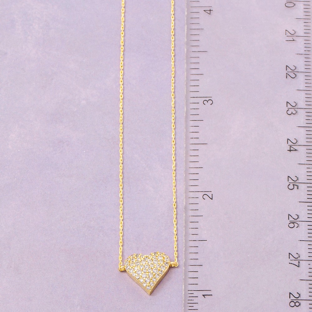 Gold Dipped Cz Studded Heart Pendant Necklace