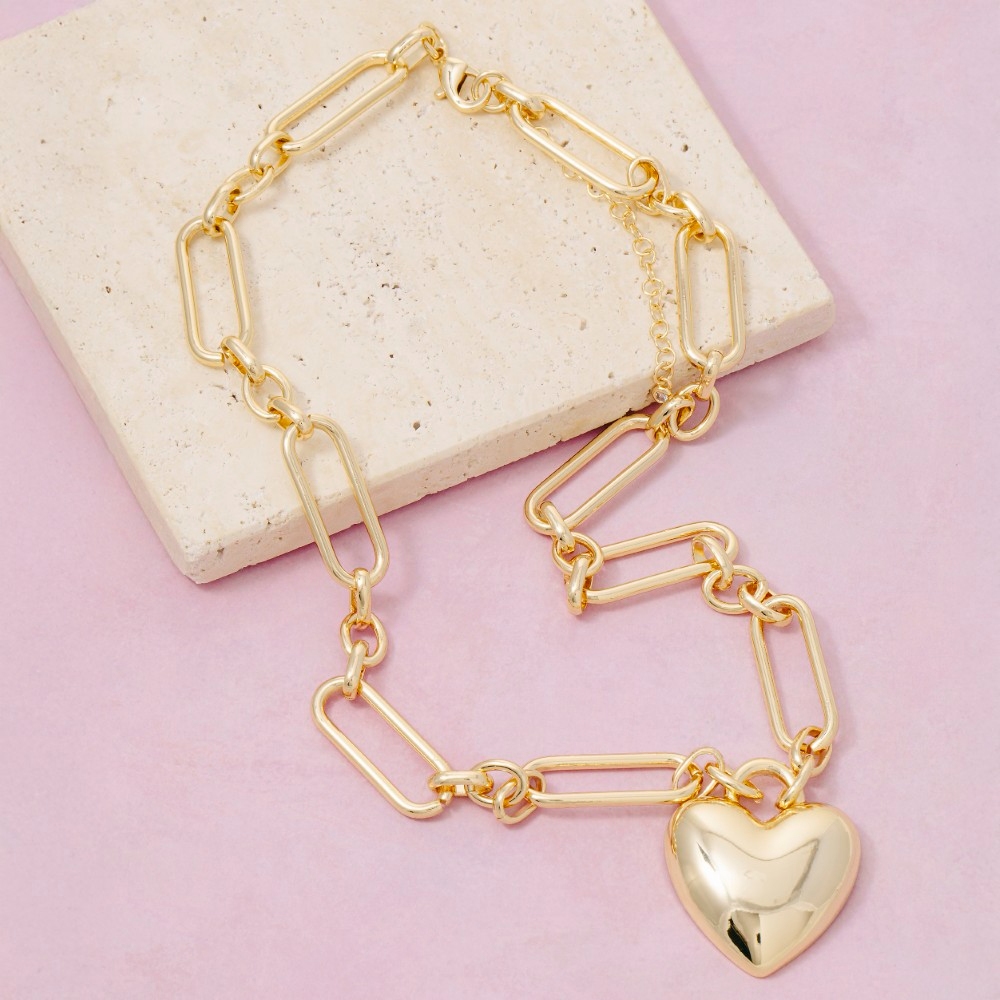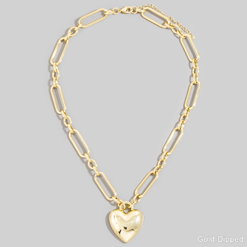Gold Dipped Heart Pendant Tube Chain Necklace