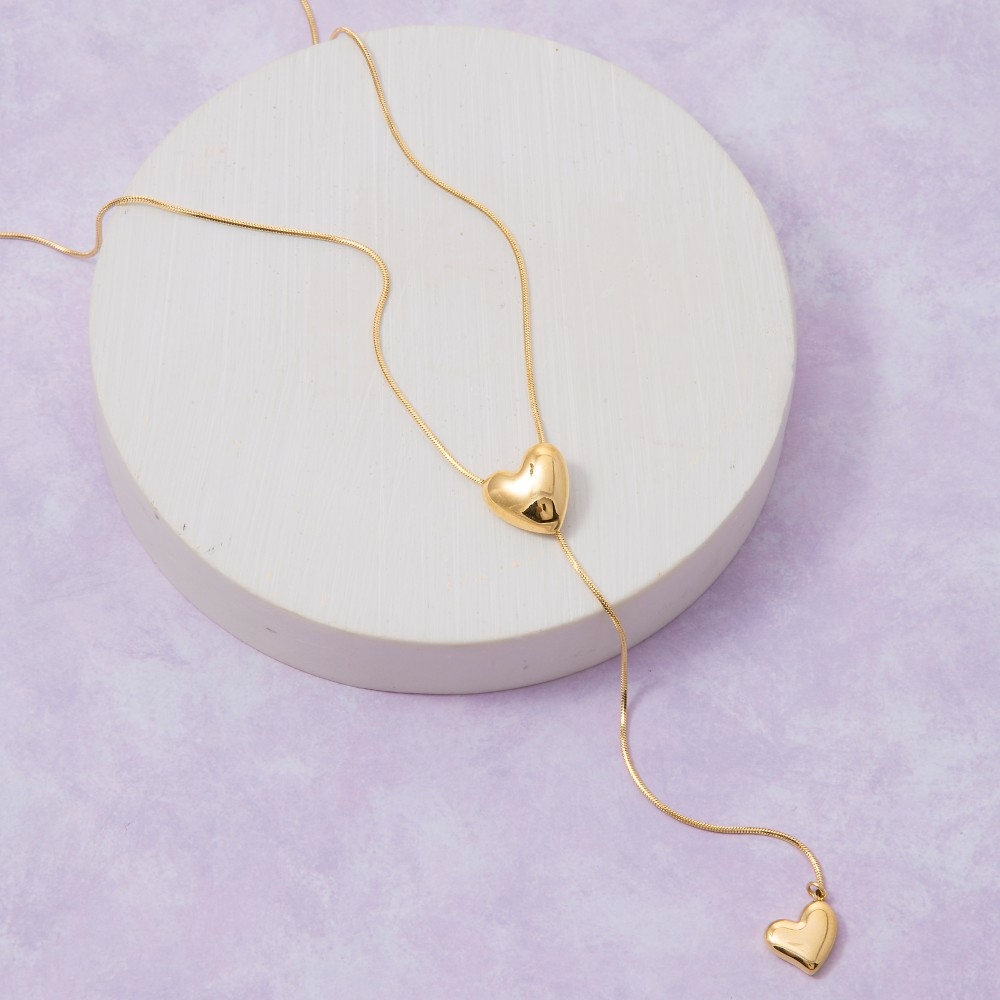 Gold Dipped Heart Pendant Tube Chain Necklace