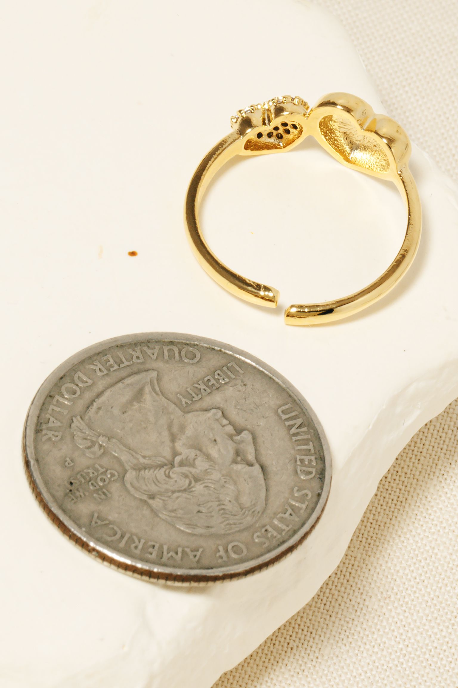 Gold Dipped Cz Pave Love Heart Open Band Ring