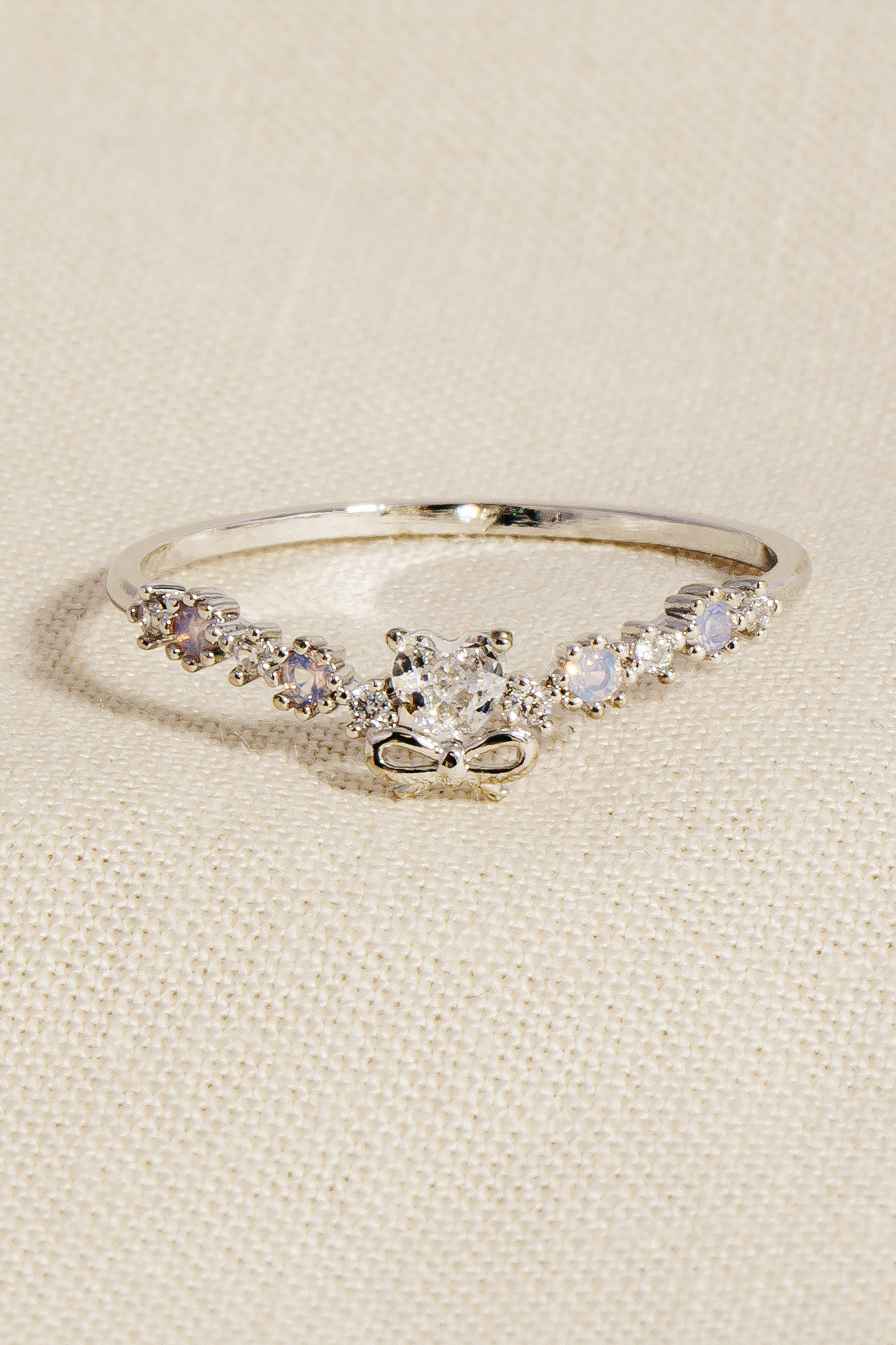 A must-have for any fashion-forward individual, this ring features an exceptional rhinestone heart bow design. Perfect for adding some texture and dimension to any outfit, this accessory is a must-have. Available in G and S.
