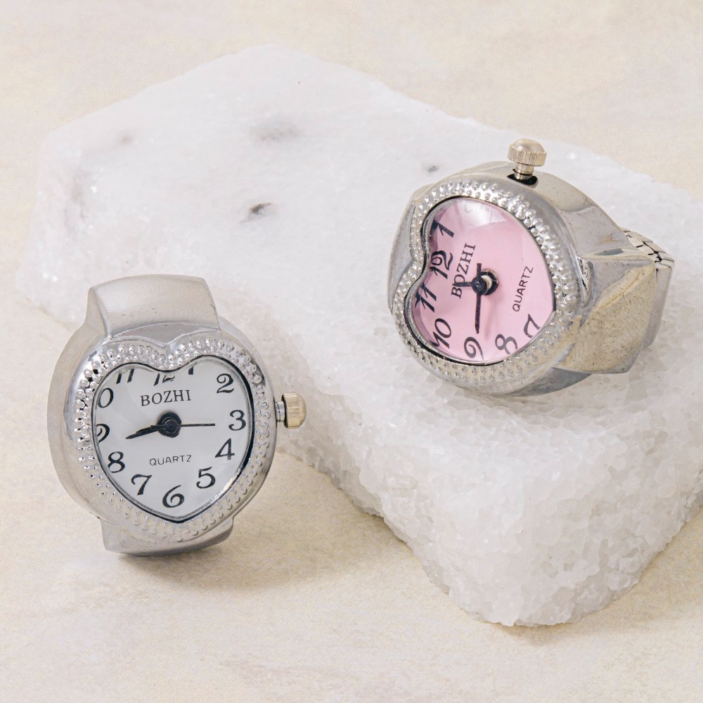 • A contemporary masterpiece, this ring encompasses a grand stainless steel heart watch design. A stylish ring that's perfect for complementing your favorite outfit. Available in SWH and SPK. This item is sold in packs of 1.