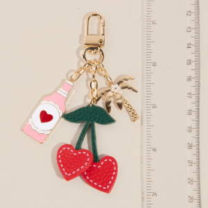Enamel Heart Bottle Palm Tree And Cherry Bag Charms