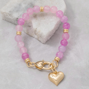 Heart Charm Mixed Marble Resin Beaded Bracelet