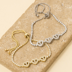 Gold Dipped Cz Multi Hearts Tennis Chain Bracelet