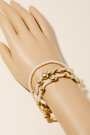Metallic Hearts And Pearl Beaded Bracelet Set