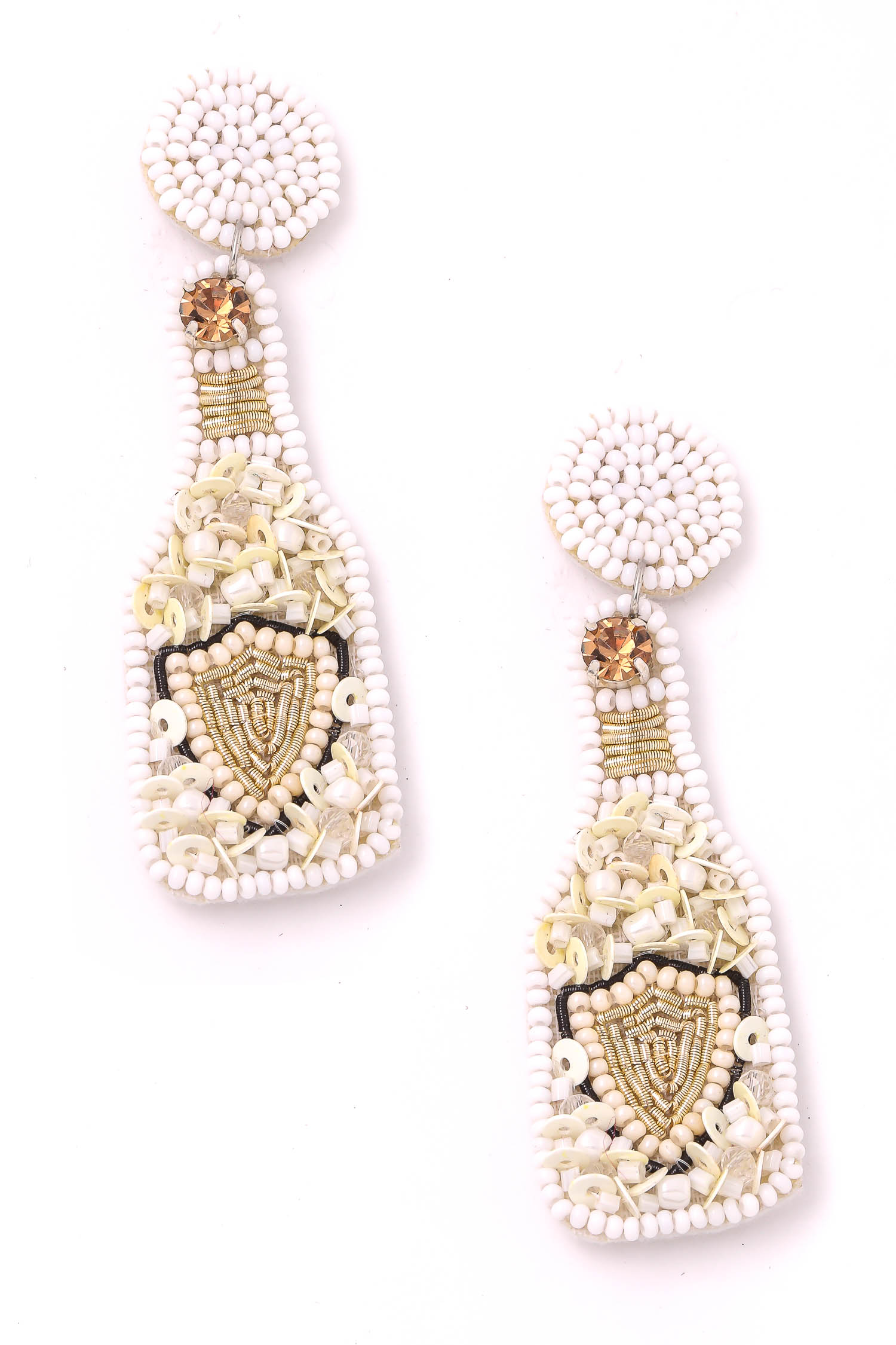 • "An elegant charming unique must have trending pair of earrings features a beaded bottle drop earrings design. Perfect for business casual occasions! Available in G,GR,PK andWT. "