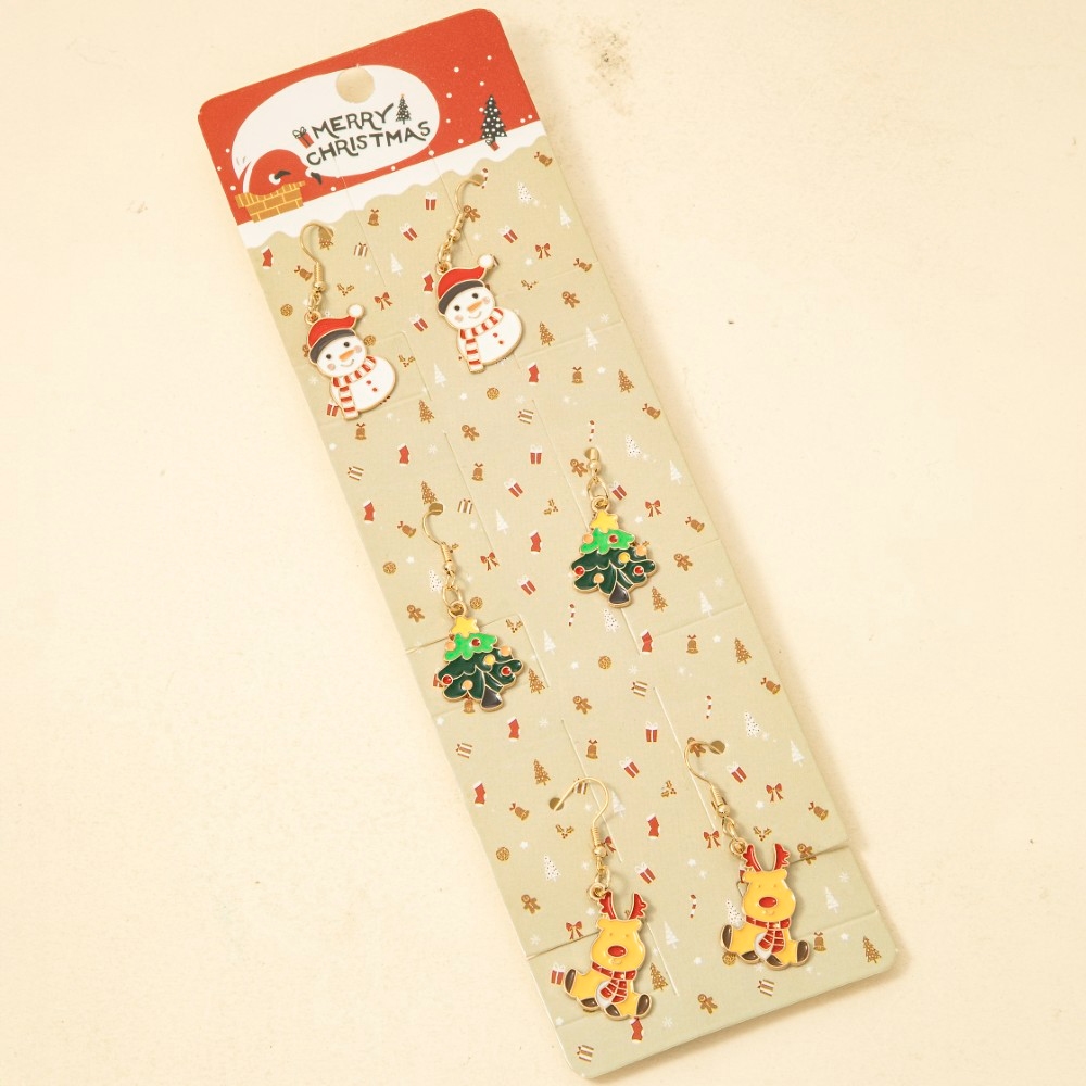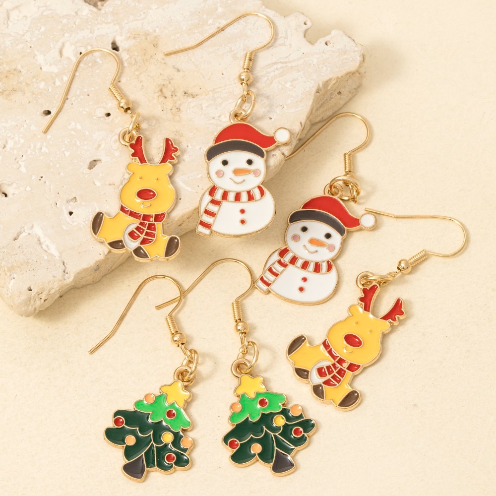 The perfect way to complete any outfit, this pair of dangle earrings exudes a refined 3pc mixed christmas enamel set design. This versatile pair of dangle earrings adds a touch of elegance to any outfit. Available in ASSORTED. This item is sold in packs of 1.