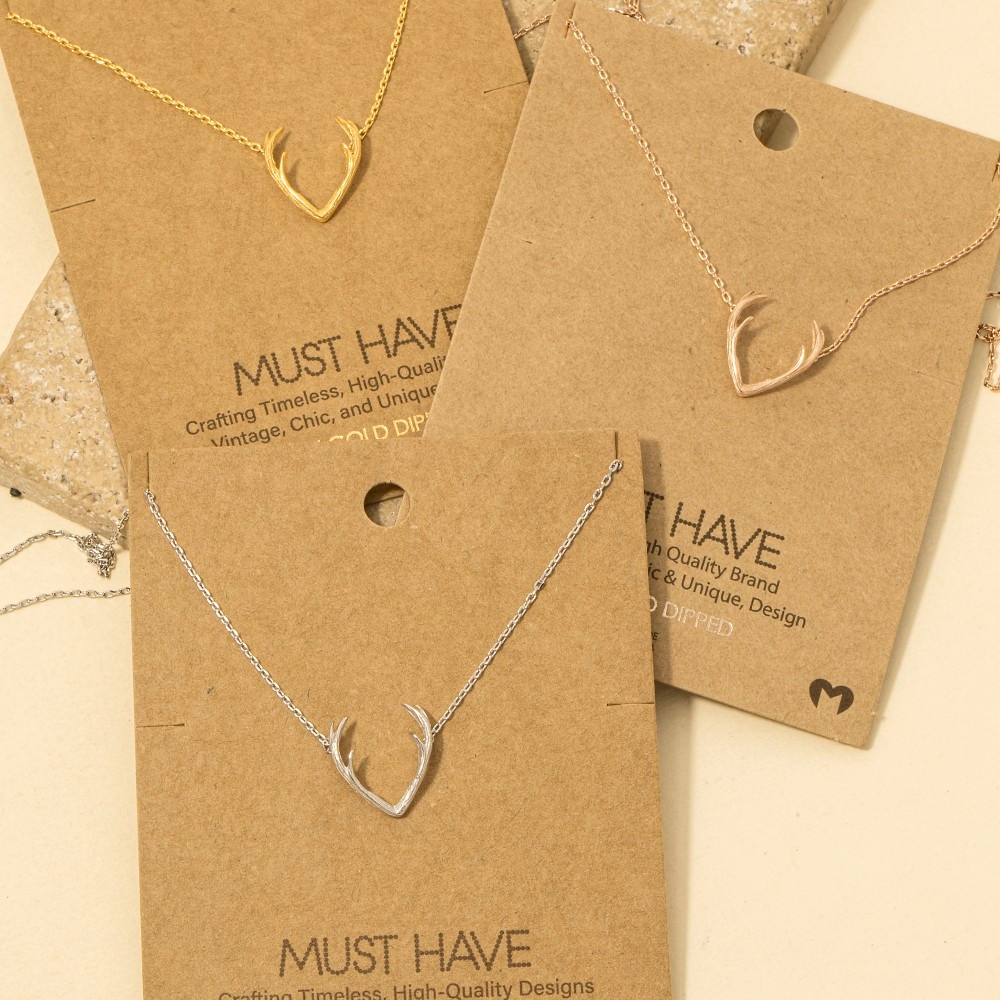 • This piece is both elegant and versatile, this trending necklace embodies a sophisticated gold dipped antler pendant necklace design. Infuse elegance into your daily wardrobe with the versatile charm of this must-have trending necklace. Available in G, R, S. This item is sold in packs of 1.