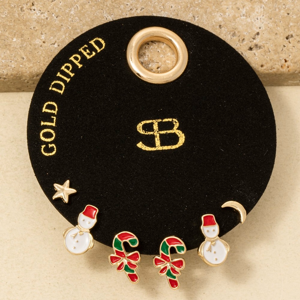 Secret Box Gold Dipped Mixed Christmas Theme Earrings Set