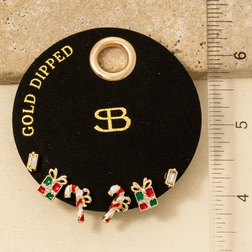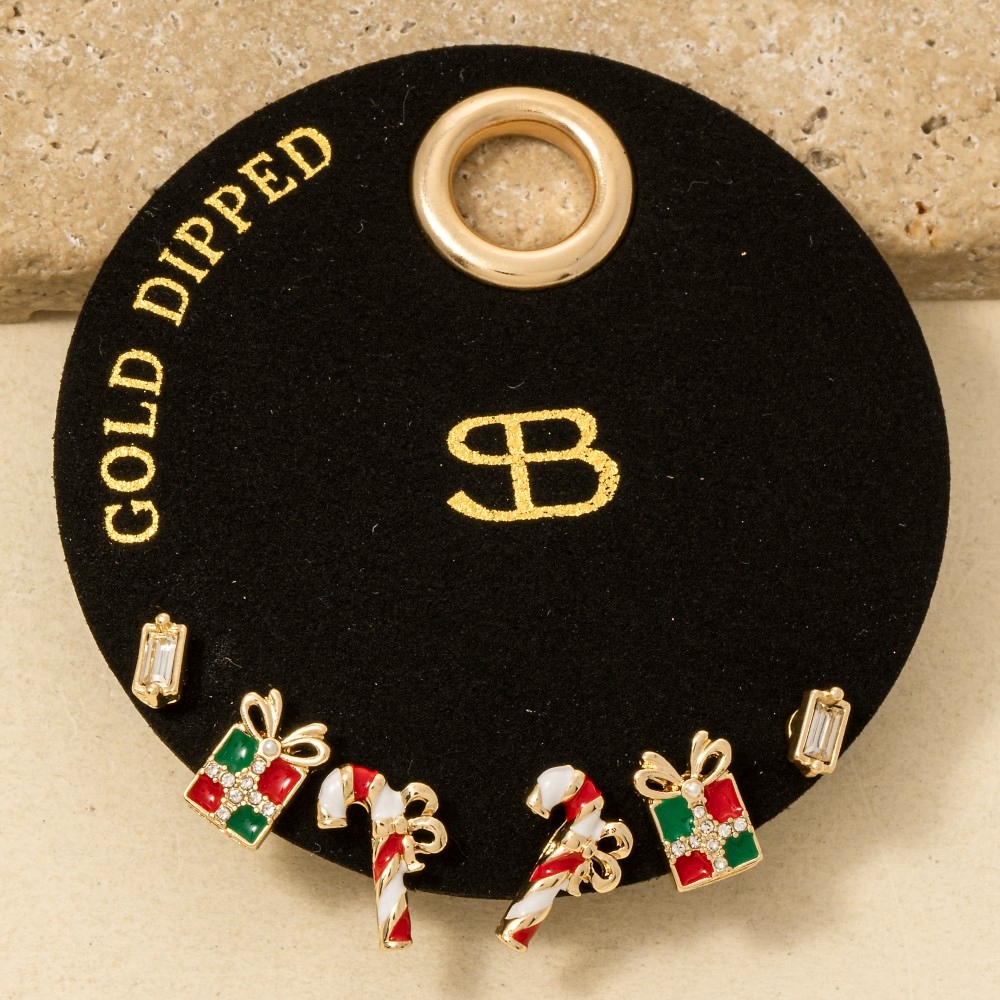 Secret Box Gold Dipped Mixed Christmas Theme Earrings Set