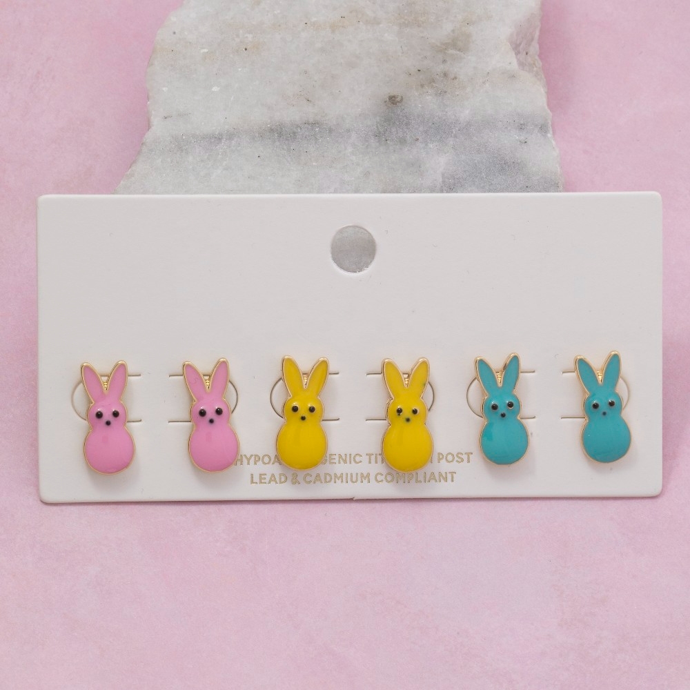 Perfect for any fashion-forward individual, this pair of stud earrings shows off a distinctive enamel easter bunnies set design. Discover the magic of accessorizing with this versatile pair of stud earrings, effortlessly upgrading the style quotient of any outfit. Available in MUL. This item is sold in packs of 1.