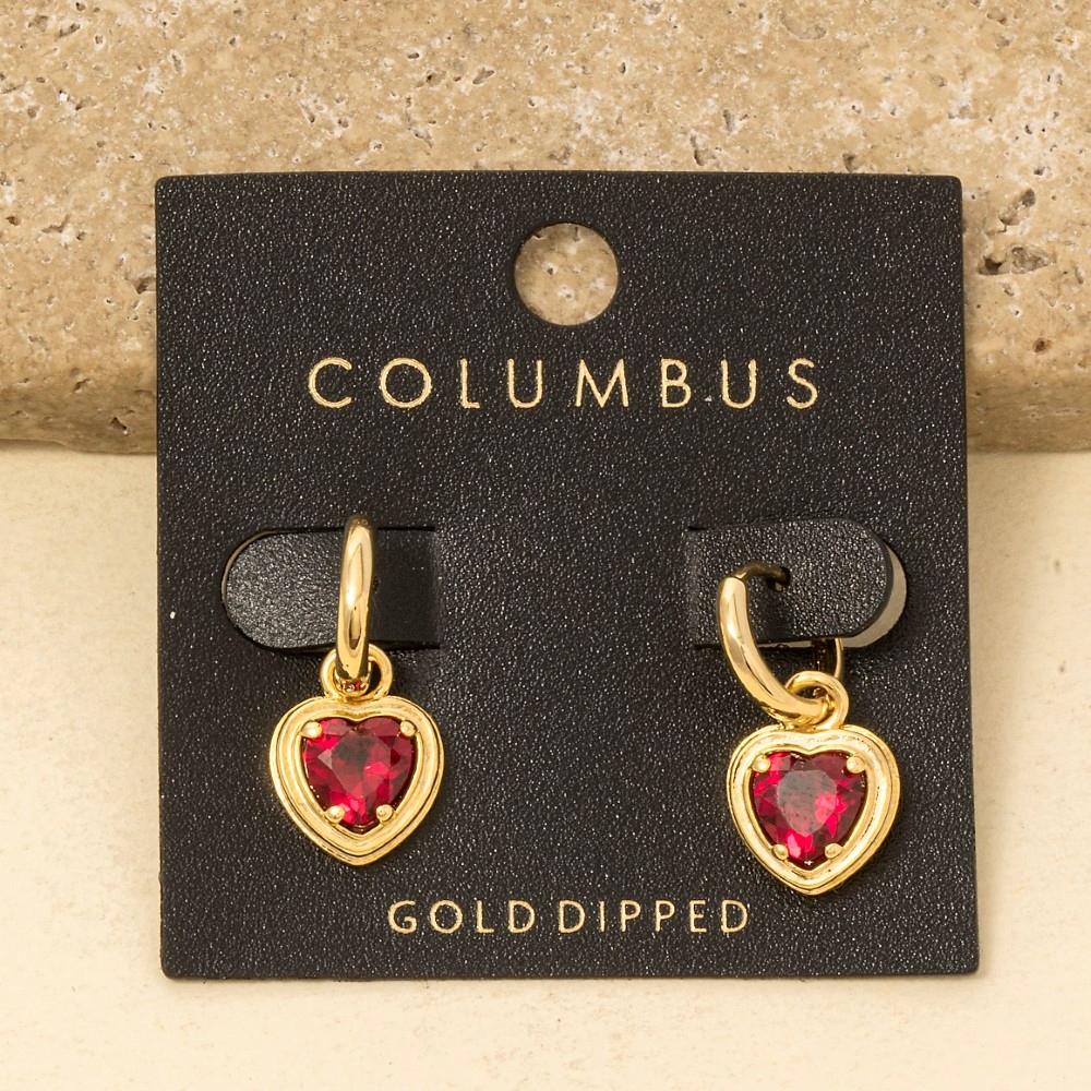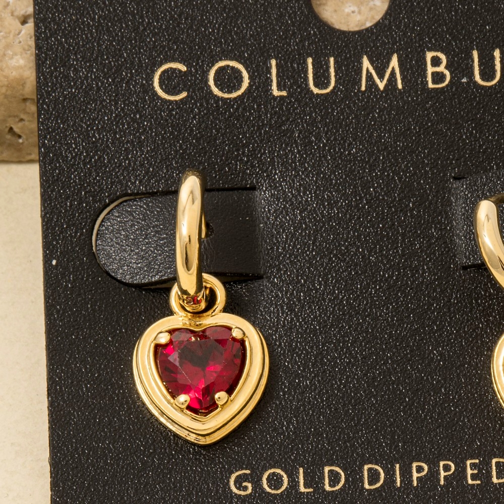 • Stay on-trend and stand out from the crowd, this pair of hoop earrings embodies a sophisticated gold dipped red cubic zirconia heart charm design. Redefine your wardrobe with this versatile pair of hoop earrings, a timeless addition that brings an air of sophistication to any look. Available in GOLD. This item is sold in packs of 1.