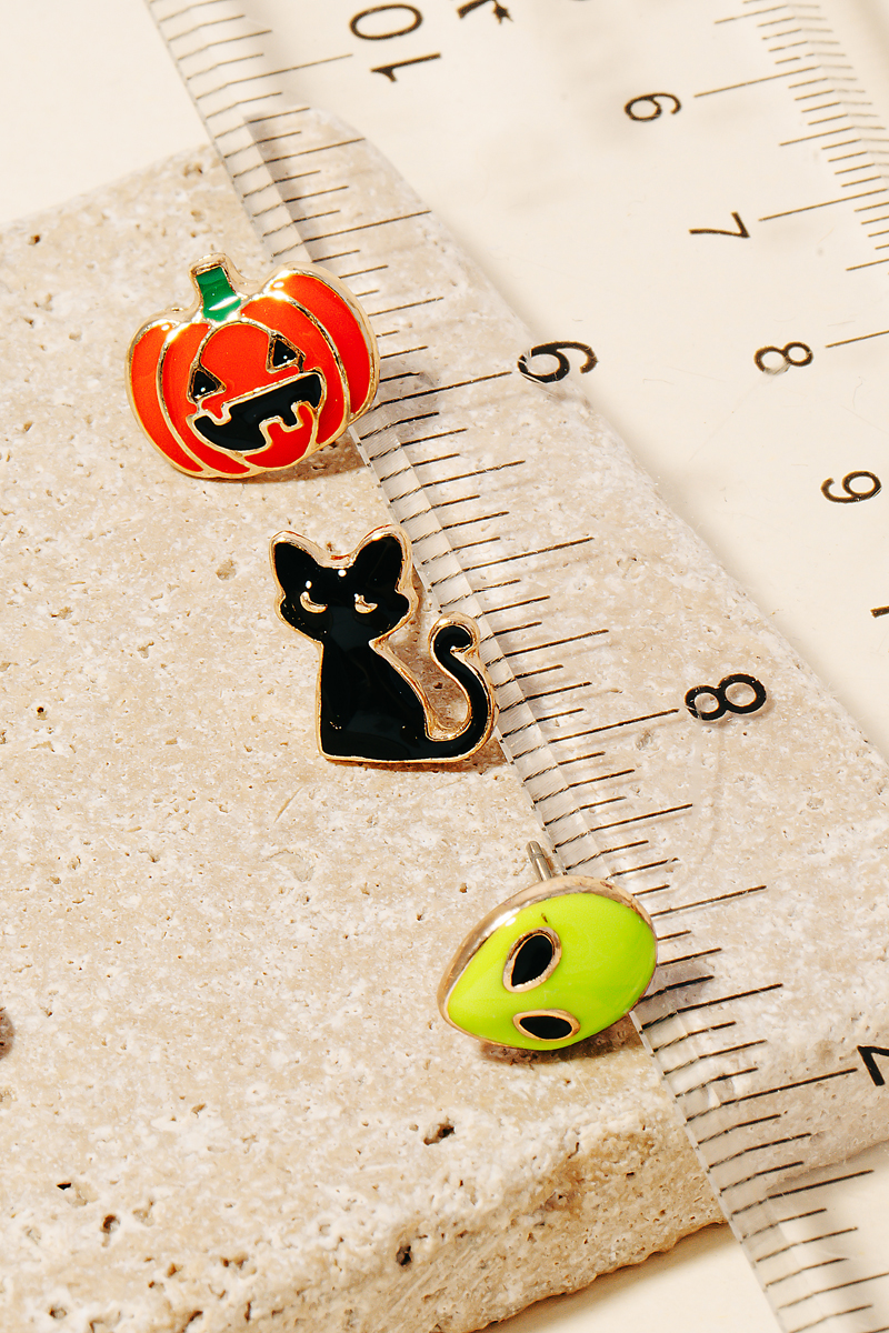 Mixed Enamel 3Pc Halloween Stud Earrings Set