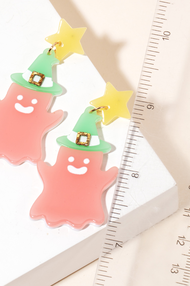 - Make a statement, this pair of dangle earrings includes a stunning glow in the dark witch hat ghost design. This item is a great way to add some texture and dimension to any outfit. Available in MT and PK.