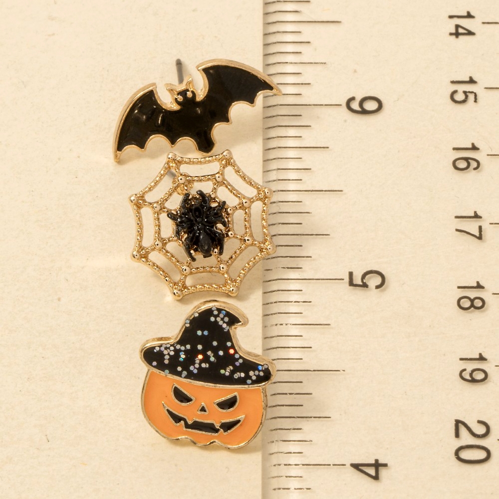 3Pc Mixed Halloween Enamel Dangle Earrings Set