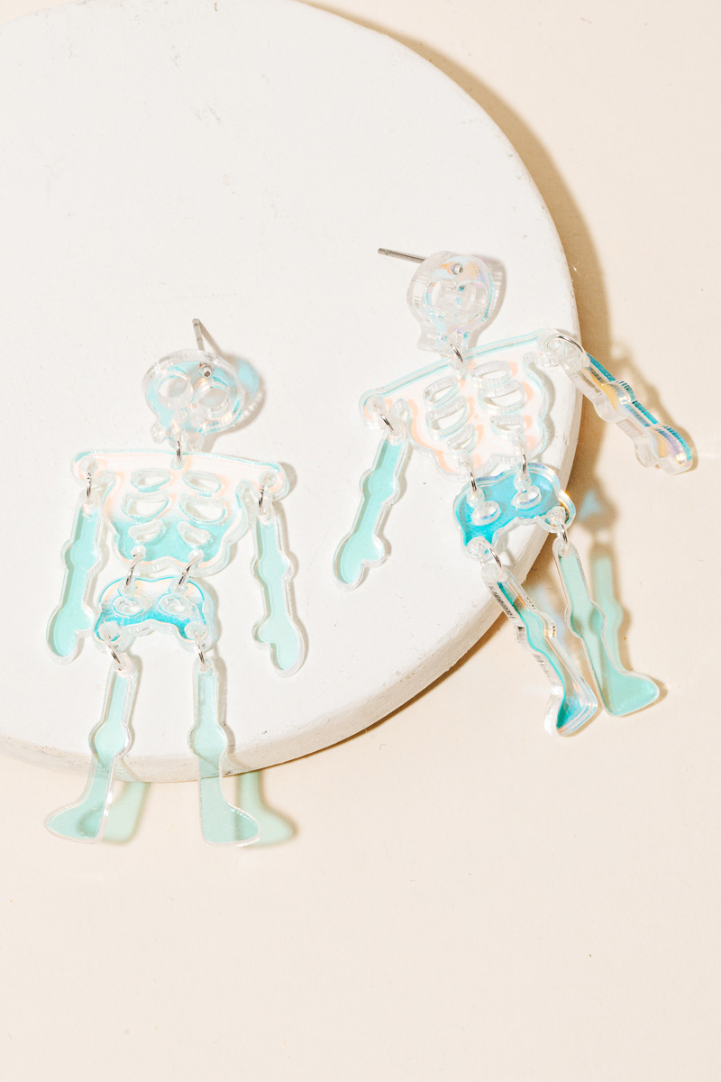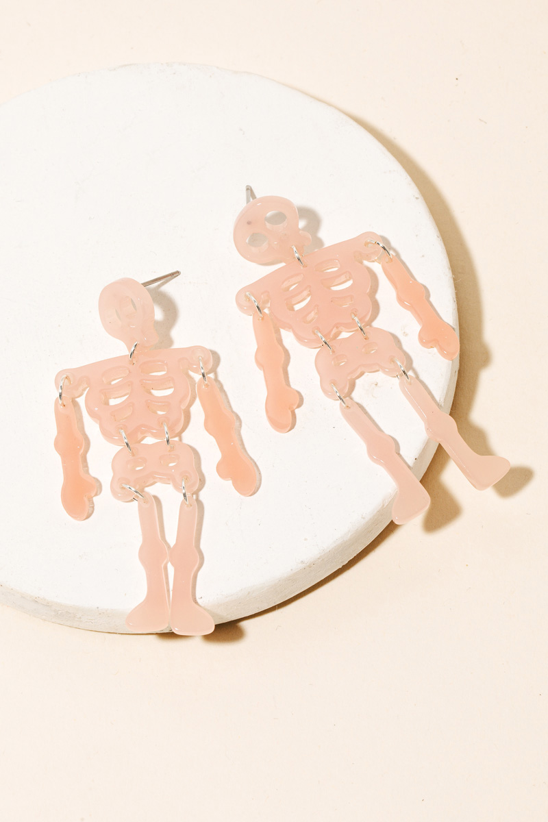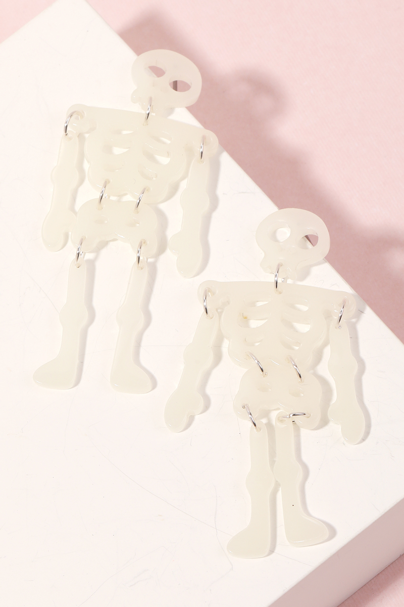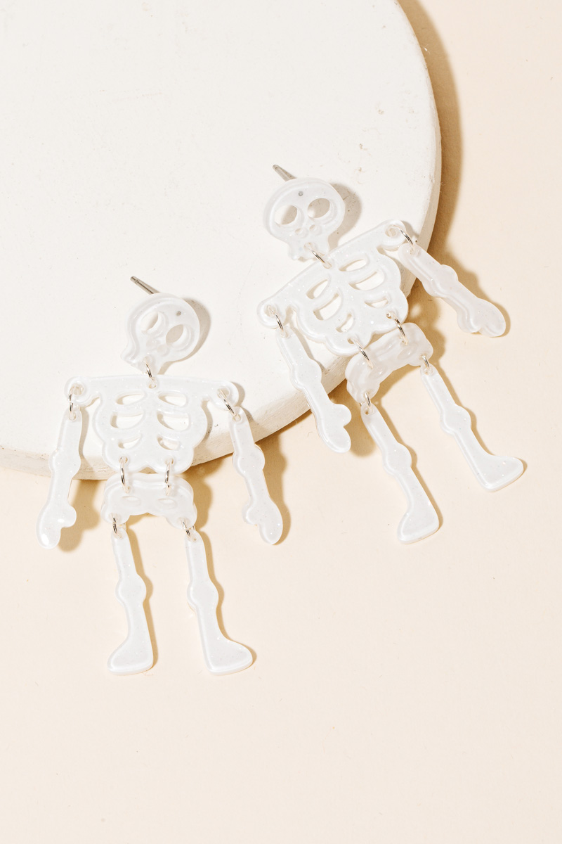 - Elevate any look, this pair of earrings introduces an exceptional resin skeleton halloween design. A stylish accessory that's perfect for complementing your favorite outfit. Available in AB, GL, GLPK and WH. This item is sold in packs of 1.