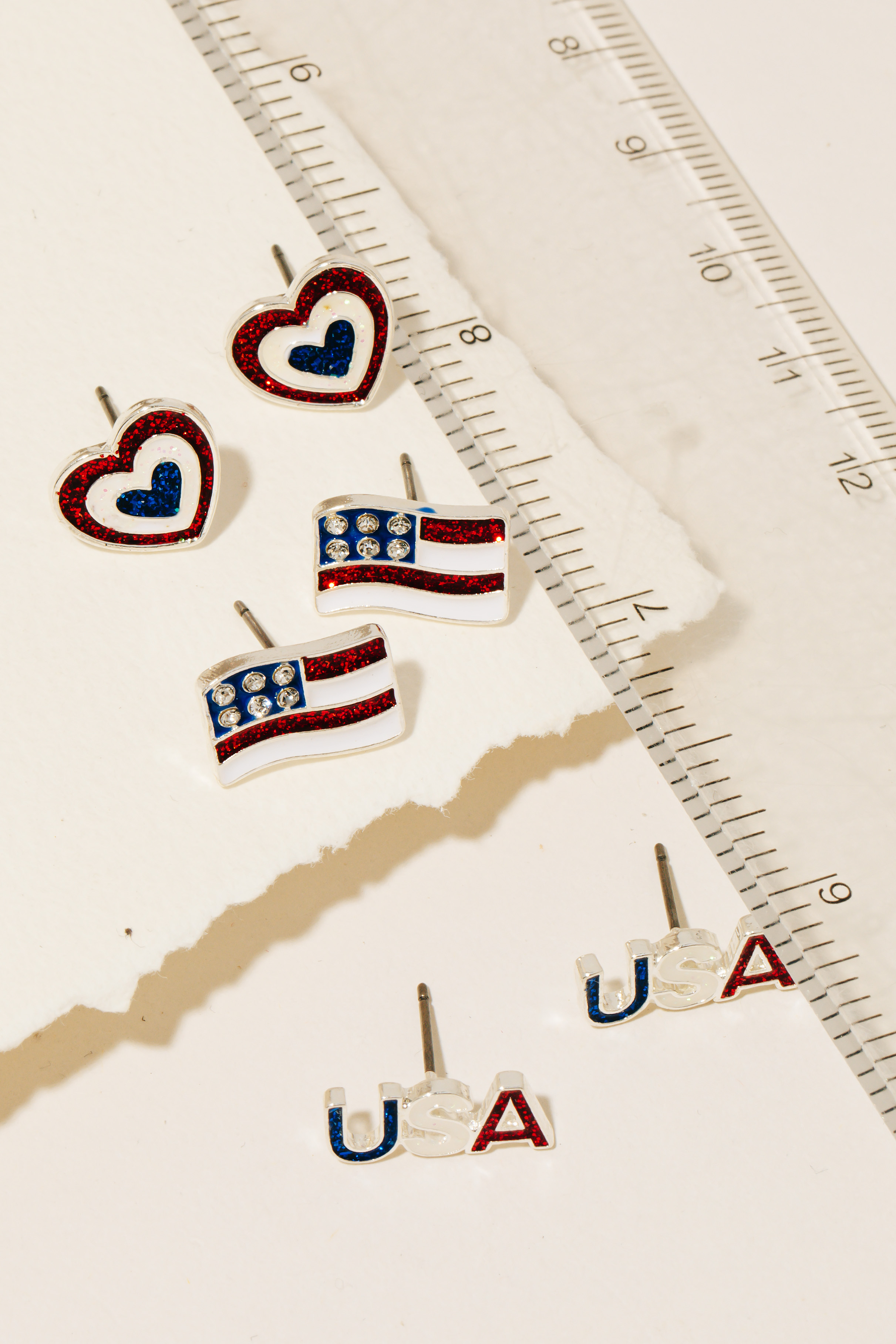 • Unleash your inner fashionista, this pair of stud earrings encompasses a grand mixed american themed set design. Elevate your fashion game with this versatile accessory, seamlessly integrating into your signature style. Available in SV. This item is sold in packs of 2.
