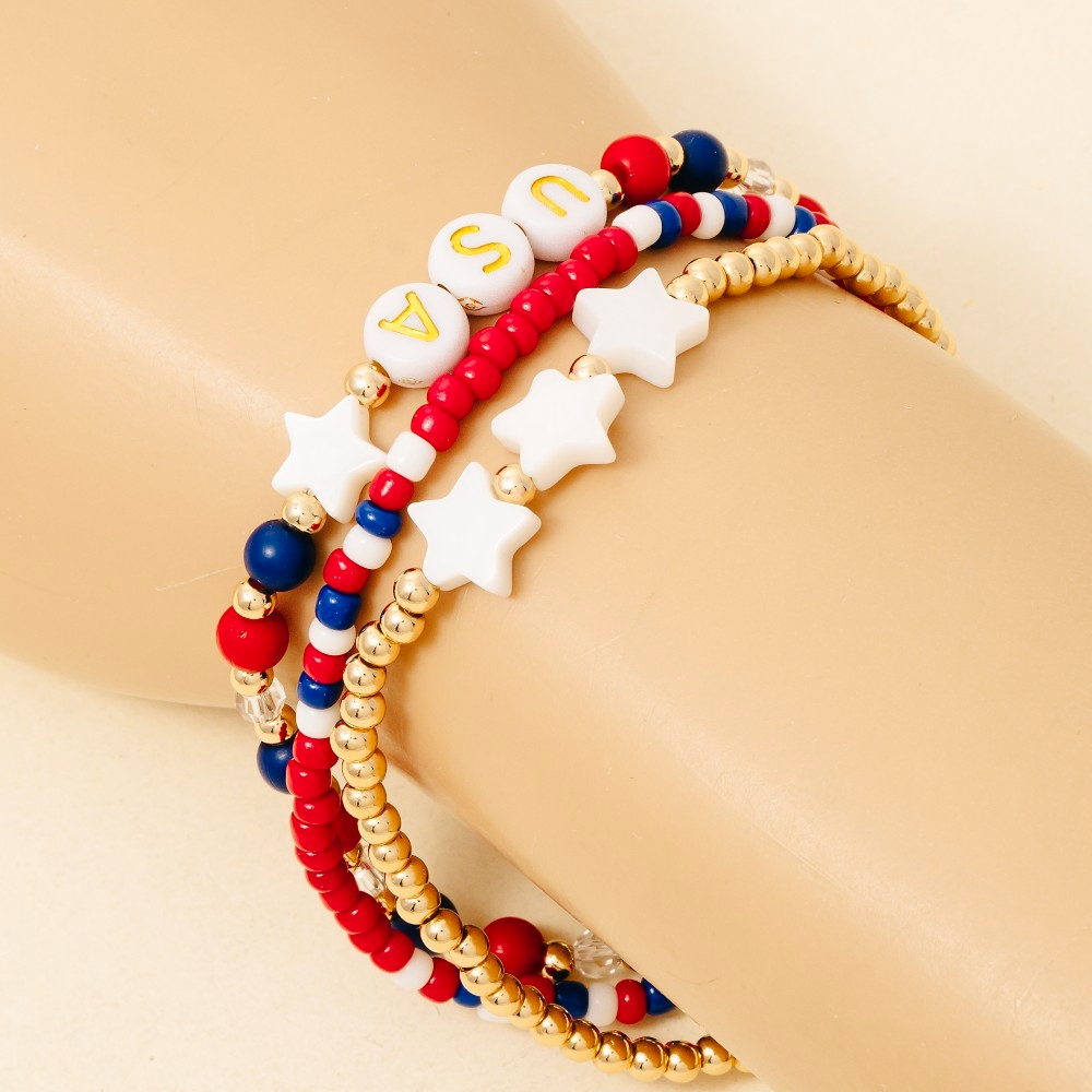 • A piece that will never go out of style, this bracelet flaunts a luxurious usa colors and stars beaded set design. This item is the perfect way to add some texture and interest to any outfit. Available in GMT. This item is sold in packs of 1.