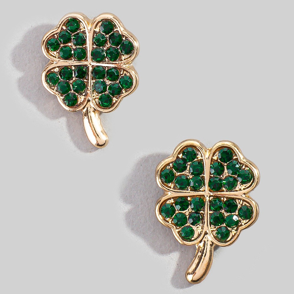 • A versatile and stylish addition to any wardrobe, this pair of stud earrings showcases an alluring pave 4 leaf clover design. The perfect pair of stud earrings for completing any outfit, whether you're dressing up or keeping it casual. Available in GNG, LGG. This item is sold in packs of 1.
