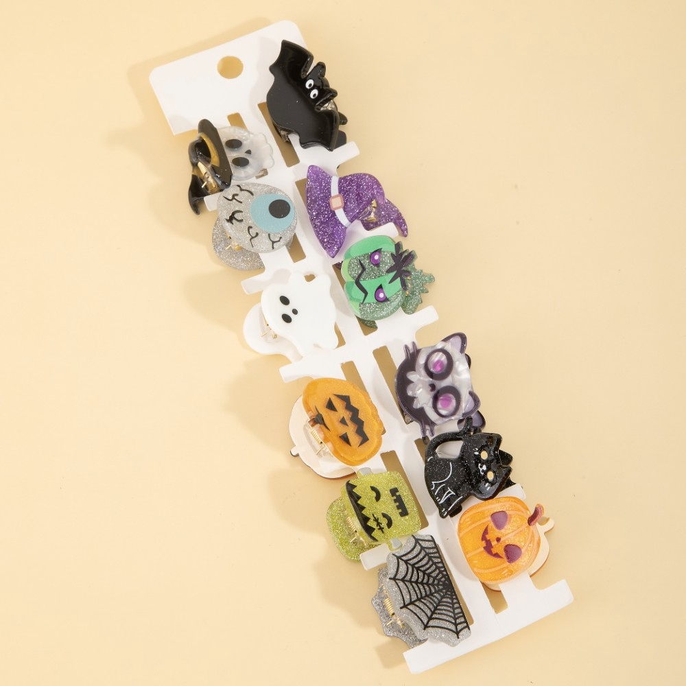 The perfect way to add some sparkle to your outfit, this hair clip carries a charming twelve piece assorted halloween mini s design. This item is the perfect finishing touch to any outfit, adding a touch of glamour and sophistication. Available in GOLD and GOLD. This item is sold in packs of 12.